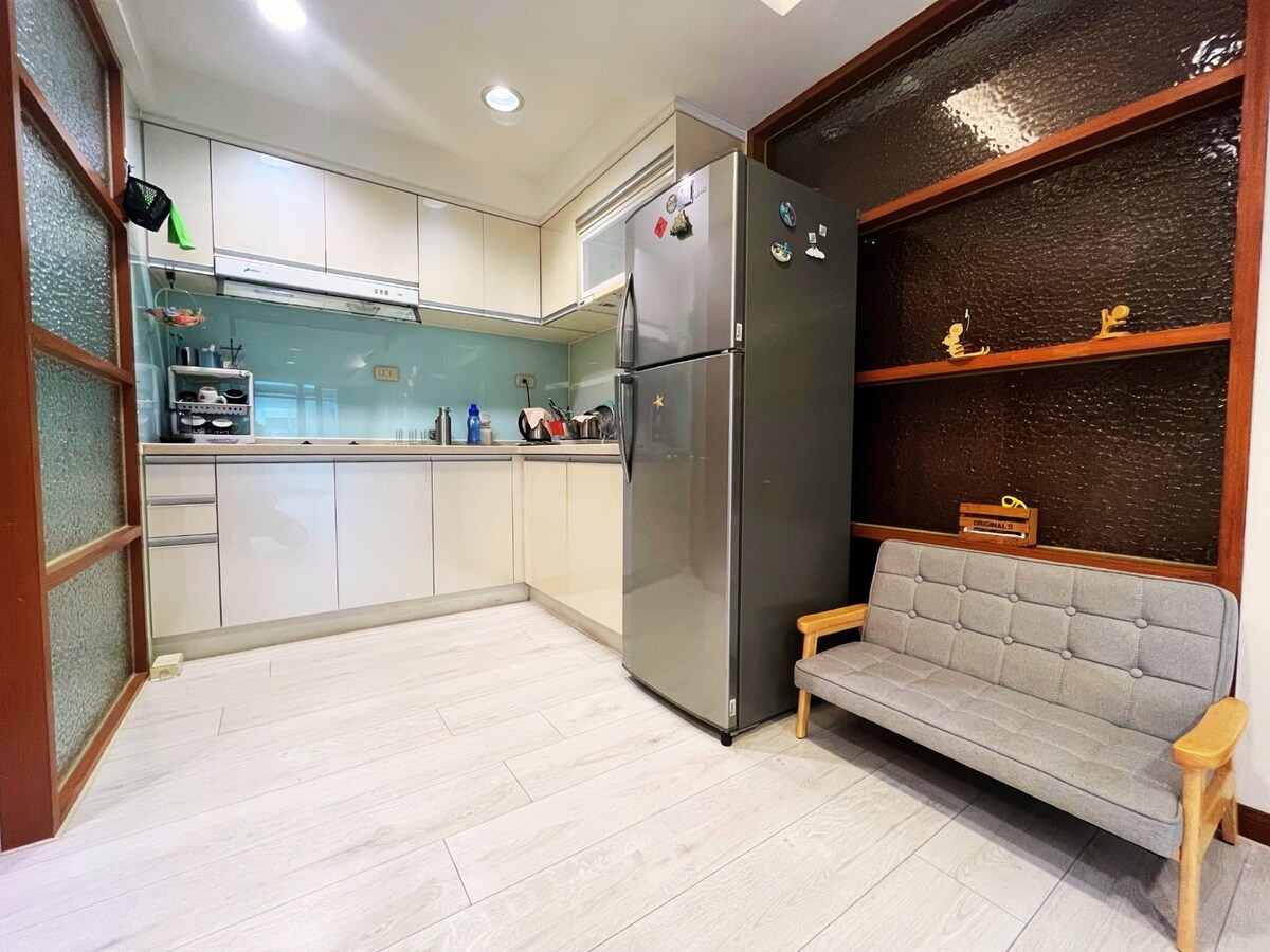 Ce que vous allez adorer : Salon ✔ lumineux – La lumière naturelle et les sièges confortables en font un endroit idéal pour se détendre Cuisine ✔ bien équipée : cuisinez des repas simples et sentez-vous comme chez vous Salle de bain✔ rénovée – Propre, moderne et confortable Wifi ✔ rapide : idéal pour le télétravail, les études ou les loisirs ✔ Emplacement accessible – Proche des arrêts de bus, des stations YouBike et accès facile au MRT Le charme du✔ vieux Taipei : découvrez la vie locale dans un bâtiment authentique