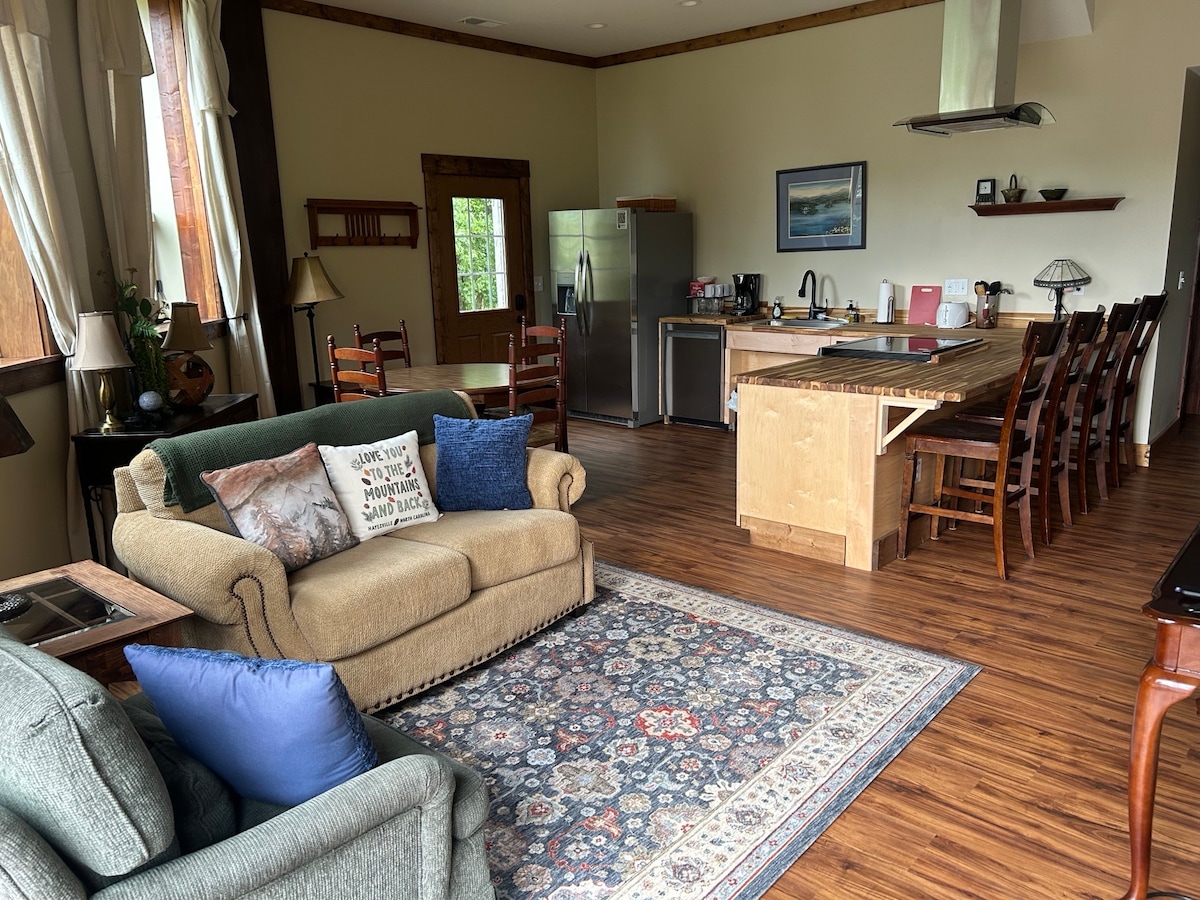 Animaux de compagnie acceptés. Frais de 75 $ par animal. Pénalité de 150 $ si vous n'indiquez pas le nombre d'animaux via le menu déroulant « Voyageurs » lors de la réservation. Les Mateos sont 4 petits bungalows avec une vue époustouflante sur le lac Nantahala et les Smoky Mountains à travers une porte vitrée coulissante de 8 pieds. Chaque Mateo dispose d'un lit queen size, d'une salle de bain privée, de la climatisation/du chauffage et d'une kitchenette avec une cafetière Keurig, un réfrigérateur avec congélateur, une friteuse, un micro-ondes, de la vaisselle et des verres pour deux. Les Mateos ne sont pas accessibles aux personnes handicapées.