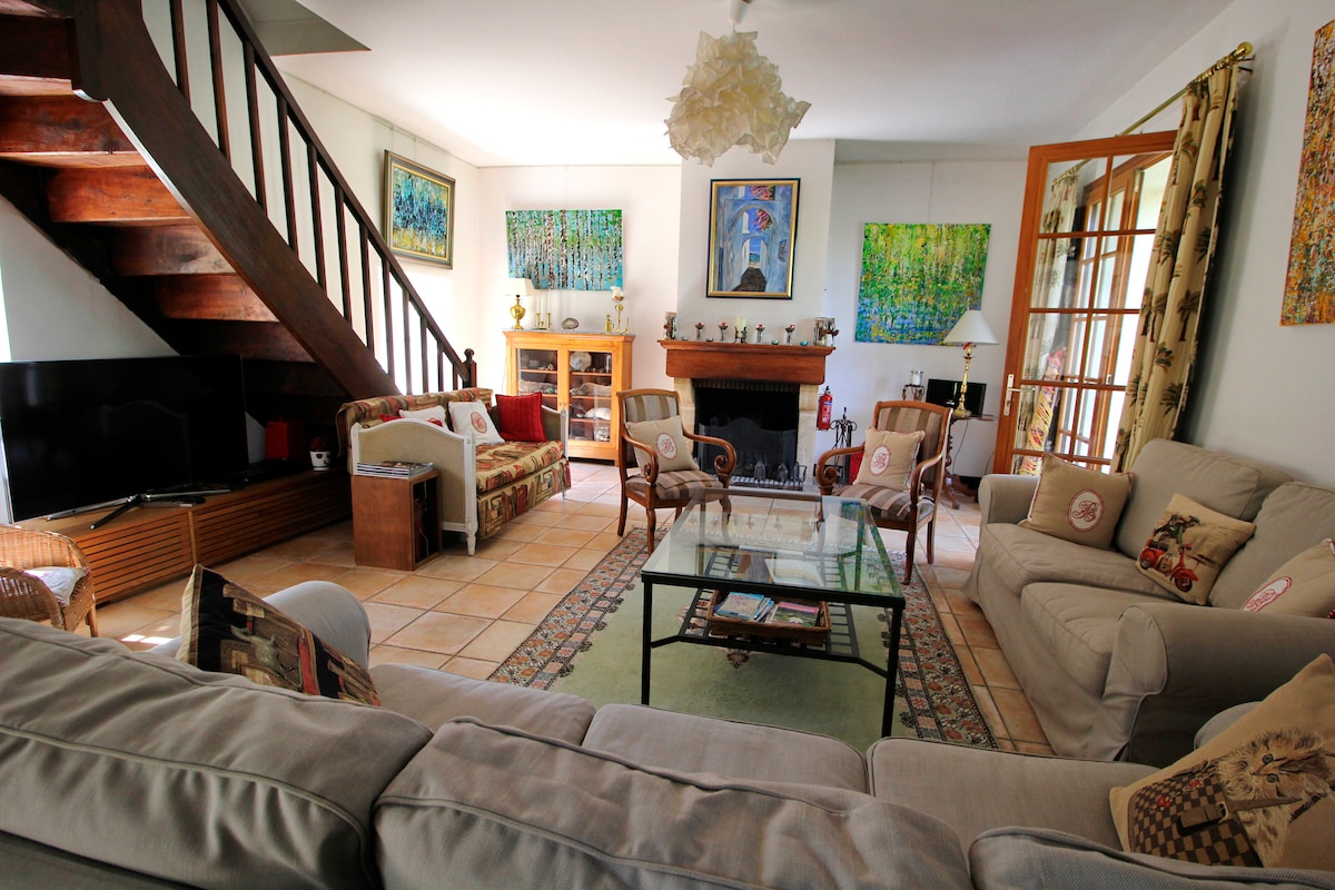 Au cœur d'un village calme, charmante maison en pierre, indépendante de notre habitation principale, grande et spacieuse (90m2). Idéal pour un weekend entre amis, en famille et les sportifs ... à 2mn à pieds de la forêt de Buthiers, du golf d’Augerville la Rivière ... Une pièce de vie lumineuse, remplie de livres et de jeux de société et de comptoir (flipper (en cours de réparation), fléchettes)... à la disposition des hôtes.