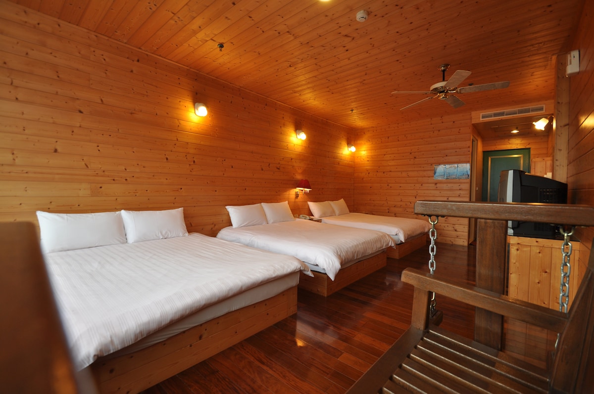 À seulement 3 minutes en voiture de la zone touristique du village des monstres de Lixitou, la chambre pour 6 personnes en forme de fenêtre, entièrement décorée de cèdre, vous permet de découvrir la sensation d'une petite cabane en bois, mais sans l'humidité d'une cabane en bois.