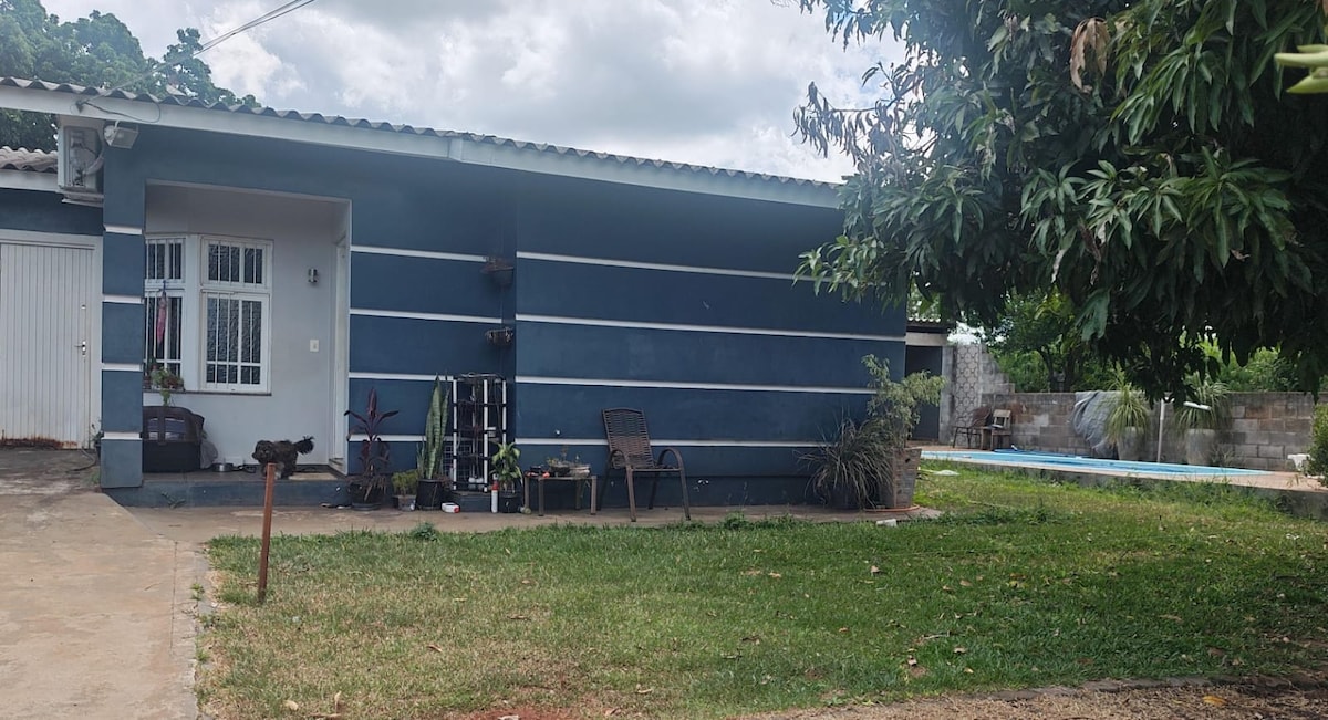- Super endroit. (Arrêt de bus à 100 m/pharmacies à 100 m/restaurants et snack-bars à 200 m/place centrale à 100 m/supermarché à 200 m) - Maison à louer pendant la semaine Expodireto, à quelques minutes du parc où se déroule la foire. - Endroit super calme et sûr, dans un quartier très bien situé. - Grande climatisation dans le salon et la cuisine, toutes les chambres avec ventilateurs. - 3 chambres avec lit double + matelas simples, la maison est spacieuse. - Garage fermé pour 1 voiture.