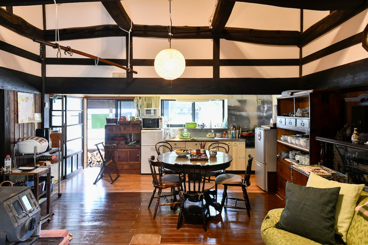 C'est une vieille maison construite il y a 221 ans, située dans le centre de Tsumago-juku.Le salon de 20 tatamis dispose d'une cheminée irori (actuellement inutilisable), et vous pourrez profiter d'une vieille maison japonaise.Il y a 3 chambres, il peut donc accueillir de grands groupes de famille et d'amis.Aucun repas fourni.Vous pouvez utiliser la cuisine complète.Au bout de la saleté de la porte d'entrée, il y a une cour arrière où vous pouvez vous promener librement.Il y a une connexion wifi et une table élévatrice automatique, vous pouvez donc travailler à distance pour les longs séjours.Veuillez passer un moment de détente dans cette maison ancienne calme.Nous sommes impatient de vous accueillir !