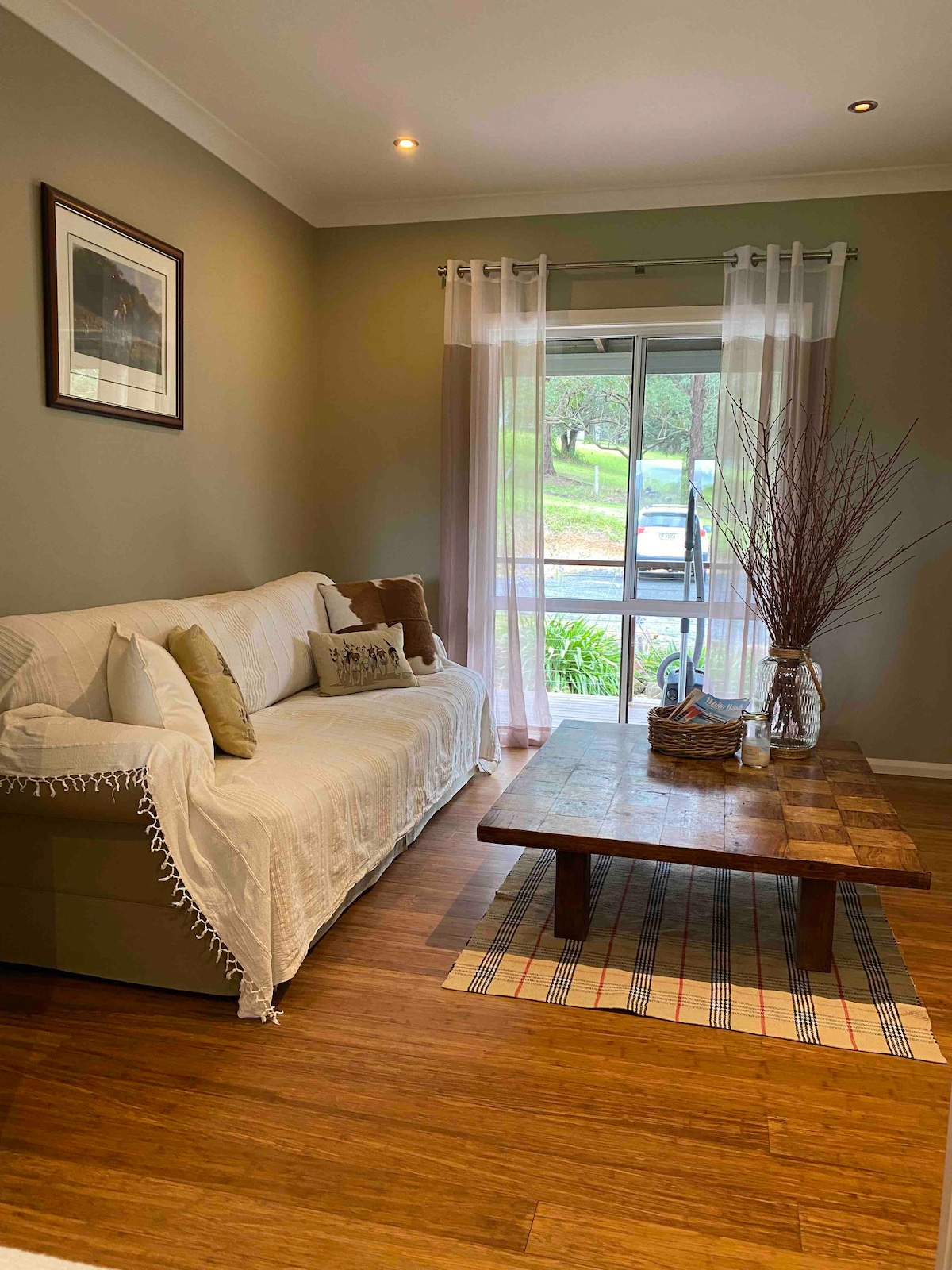 Escape to a serene retreat, tucked away in a lush, fully fenced garden surrounded by trees. Ideal for couples, young families, and their furry friends, this pet-friendly haven has everything you need for a relaxing getaway. Just 550 meters from Narrawallee’s dog-friendly beach, enjoy peaceful walks or lazy days by the sea. With cozy cafés and essentials within walking distance and the charming historic town of Milton only a 5-minute drive away, your perfect coastal escape is ready and waiting!