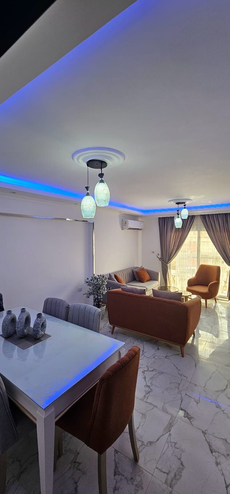 Amusez-vous avec toute la famille dans ce logement chic. Profitez du système de haut-parleurs surround lumineux et sonore. - Profitez de la télévision connectée de 65 pouces. - Draps et serviettes en coton égyptien. - En vous installant dans la SALLE D'ÉVÉNEMENT qui dispose d'un grand espace naturel (SEL DE SIWA) provenant du lac de cristal de Siwa, vous expulserez l'énergie négative qui récupère non seulement notre corps physique mais aussi notre corps énergétique.