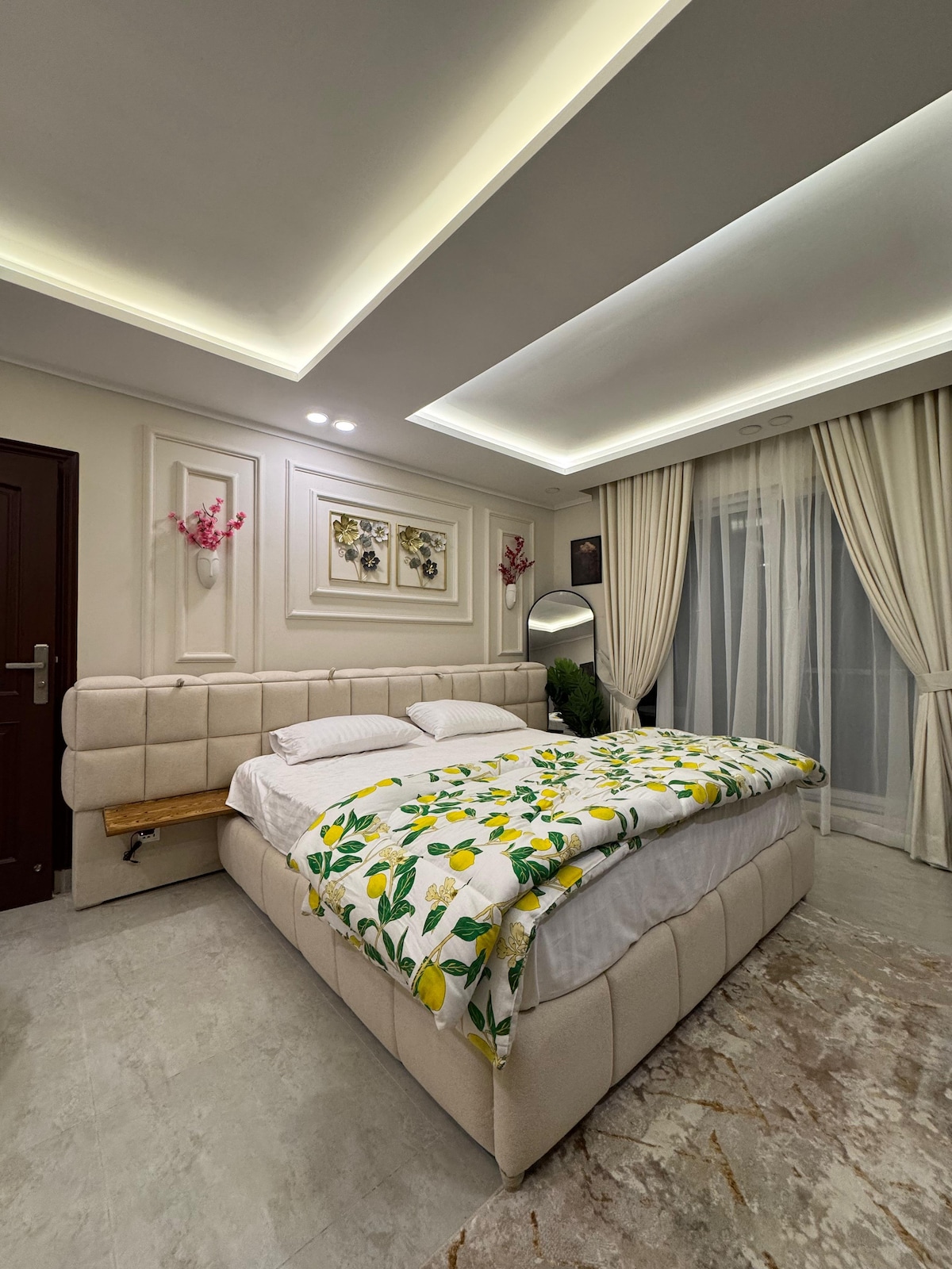 This stylish Studio apartment is equipped with luxury king size bed, Android TV, cozy bar, spacious kitchen, clean bathroom, air conditioning, Mountain facing balcony, loaded with all the amenities for a luxurious staycation. It's inside a secure and posh building with 24 hour service, free parking space, backup power and security. Features in-house tuc shop, BBQ, Bonfire and other facilities to make your stay all the more enjoyable.