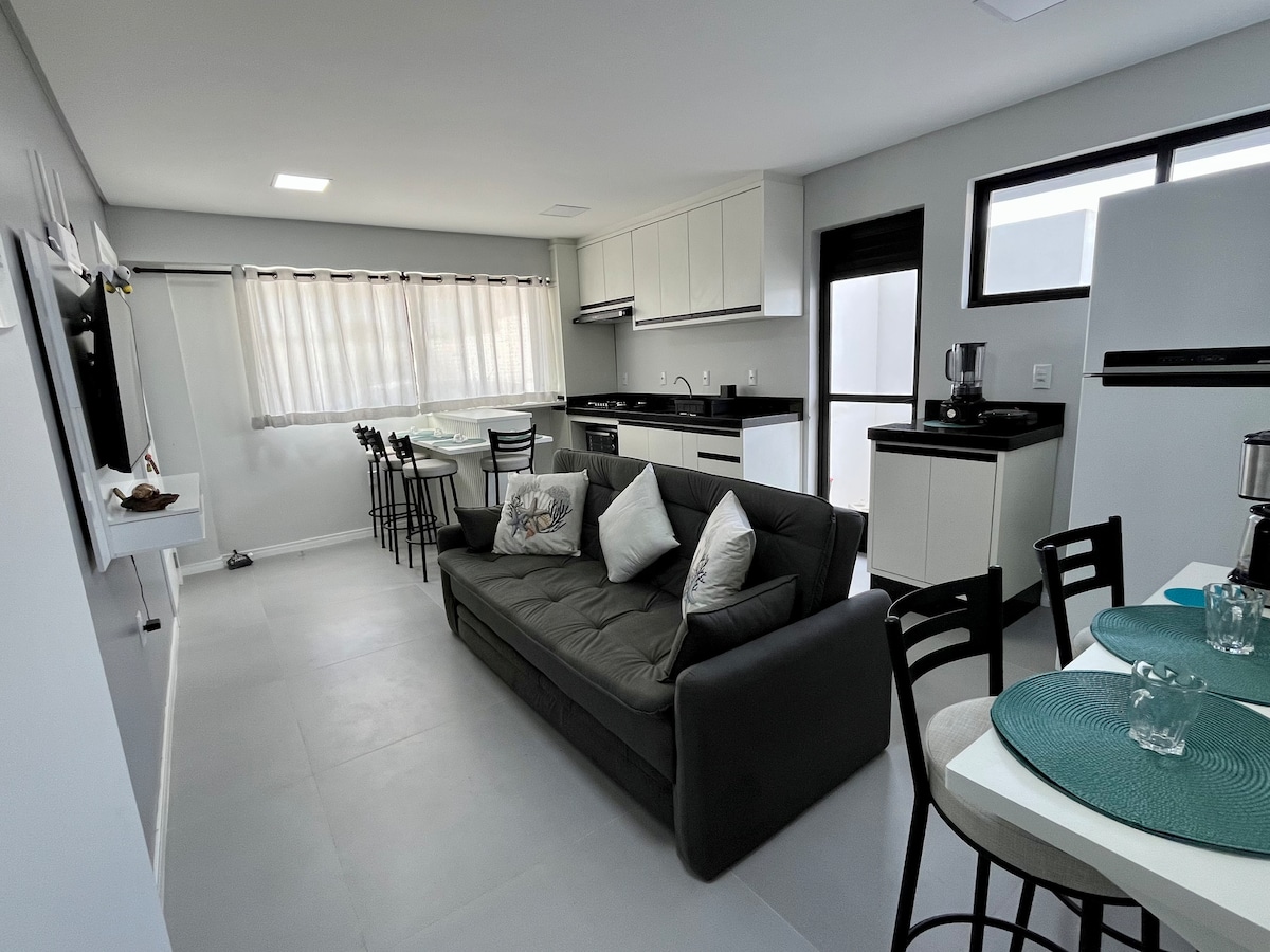 Lounge Apartment, located in Brava Beach and 10 minutes from Balneário Camboriú. The location is perfect. Only 5 blocks from Beach. Close all parties and restaurants. Condo with complete infra, Pool, Gym, Steam and 4 Barbecues. The apartment has Mountain-facing Jacuzzi with hydro and chromotherapy. Ideal for relaxing or take a romantic time. It has 58 'smart TV in the living room and 40' in the bedroom. Full kitchen. Machine washes and dries. You will love this place.
