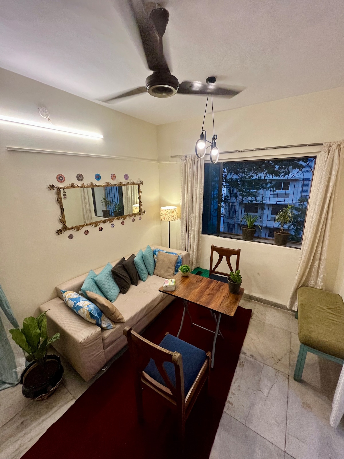 Planning a trip to Mumbai? What's better than spending your time living by the sea enjoying the soothing breeze of the Arabian Sea. The COUPLE FRIENDLY apartment located in the beautiful Sherly Village, Off Carter Road makes Mumbai City feel like a scenic village. A 30 seconds walk takes you to the charming Carter Road Promenade. If you decide to go in the opposite direction for a stroll you will reach the authentic Pali Hill. Important : 100 feet walk from the Main Road, no vehicle access.
