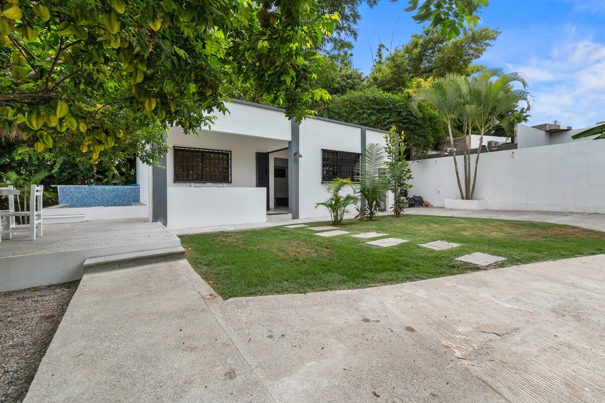 Fantástico y céntrico lugar para hospedarse y disfrutar de las bellezas de Puerto Vallarta y Bahía de Banderas. Casa con acabados rusticos "tipo cabaña", con bello jardín, área común y estacionamiento para dos automóviles. Cuenta con excelente ubicación para transportarte a Puerto Vallarta (aeropuerto 15 minutos aprox), así como diferentes áreas de Bahía de Banderas: - Playa más cercana 10 minutos (Nuevo Vallarta). - Bucerías 20 minutos. - Sayulita 40 minutos. - Punta de Mita 45 minutos.