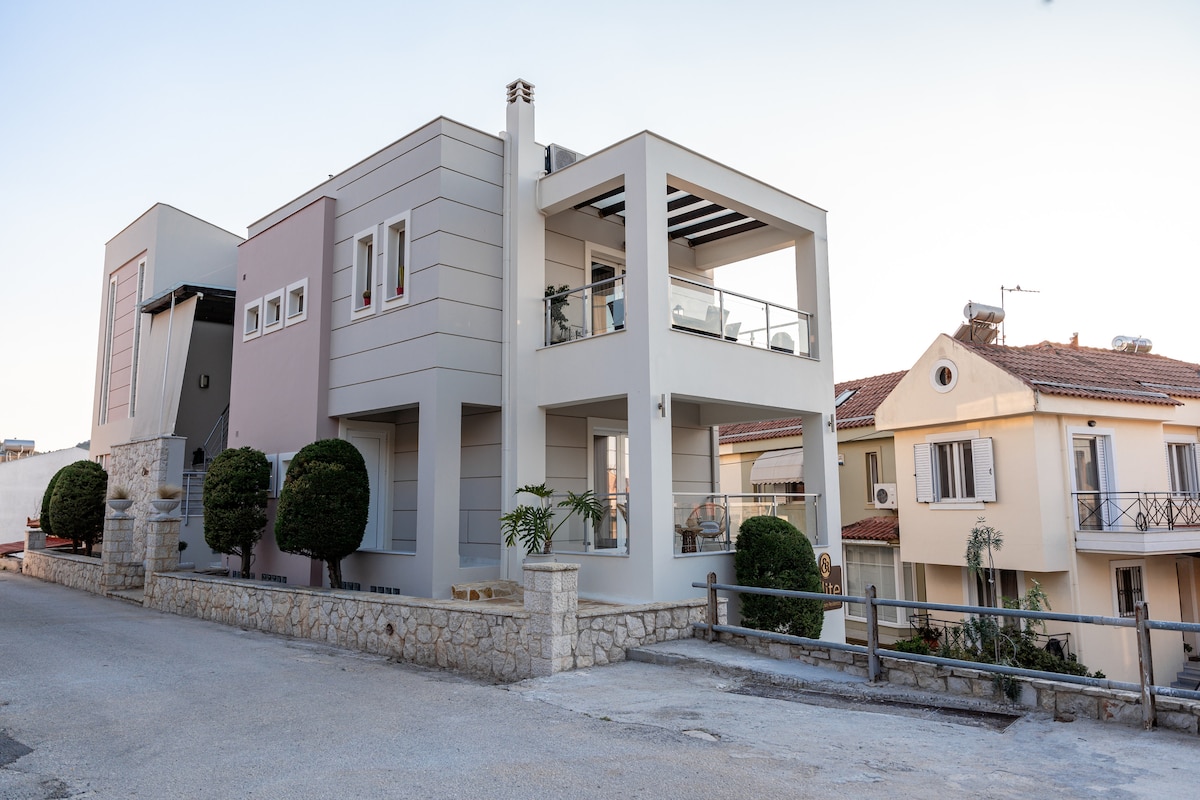 Nous vous accueillons dans notre tout nouvel appartement de luxe dans la belle ville de Nauplie. Vous serez hébergé dans un appartement de 2 chambres entièrement équipé avec des balcons confortables, une vue à couper le souffle et un souci du détail. Notre appartement est situé dans un quartier sûr et calme, dans un complexe de maisons de luxe, avec parking souterrain, ascenseur, à 900 m de l'hôtel de ville de Nauplie.
