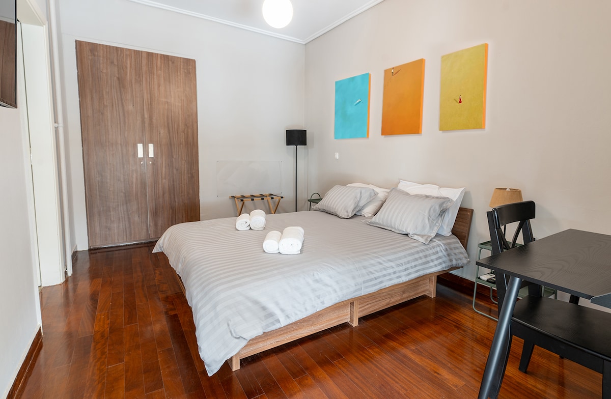 !Νιώστε άνετα στο κατάλυμα μας που βρισκετε στο κεντρο της πολης Μπορειτε να εργαστειτε,να διαβάσετε ,να μαγειρεψετε,να απολαυσετε την ησυχια στην αυλη τριγυρισμενοι με λουλουδια και την σκια απο την πανυψηλη καρυδια. Η λεμονια ειναι στην διαθεση σας να απολαυσετε τους καρπους της. Ενα στουντιο σε κεντρικοτατο σημειο σε αποσταση 3 λεπτων απο στασεις λεοφωρειων και σουπερ μαρκετ 24ωρης λειτουργειας και 2 λεπτων απο τραπεζες. Σε 1 λεπτο βρίσκετε το Αλσος γεματο πευκα και διαδρομες στην φυση!
