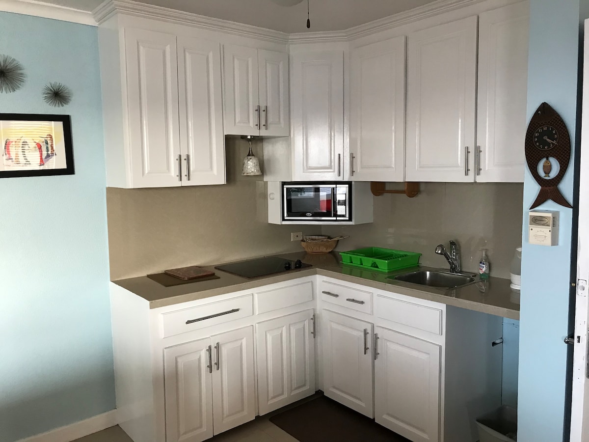 Aucun ESPACE PARTAGÉ - seul l'espace partagé est le POOL. Profitez d'une expérience élégante dans ce complexe d'appartements de style hôtelier situé au centre. Studio privé avec vue imprenable sur l'océan, même sur le lit flottant futuriste. Meubles et appareils modernes et chics pour votre confort. Restaurants locaux et plage à seulement deux minutes de marche. Superbe propriété fermée avec piscine chauffée ! Cet appartement est parfait pour les réseaux sociaux/ photo : montrez et profitez-en !