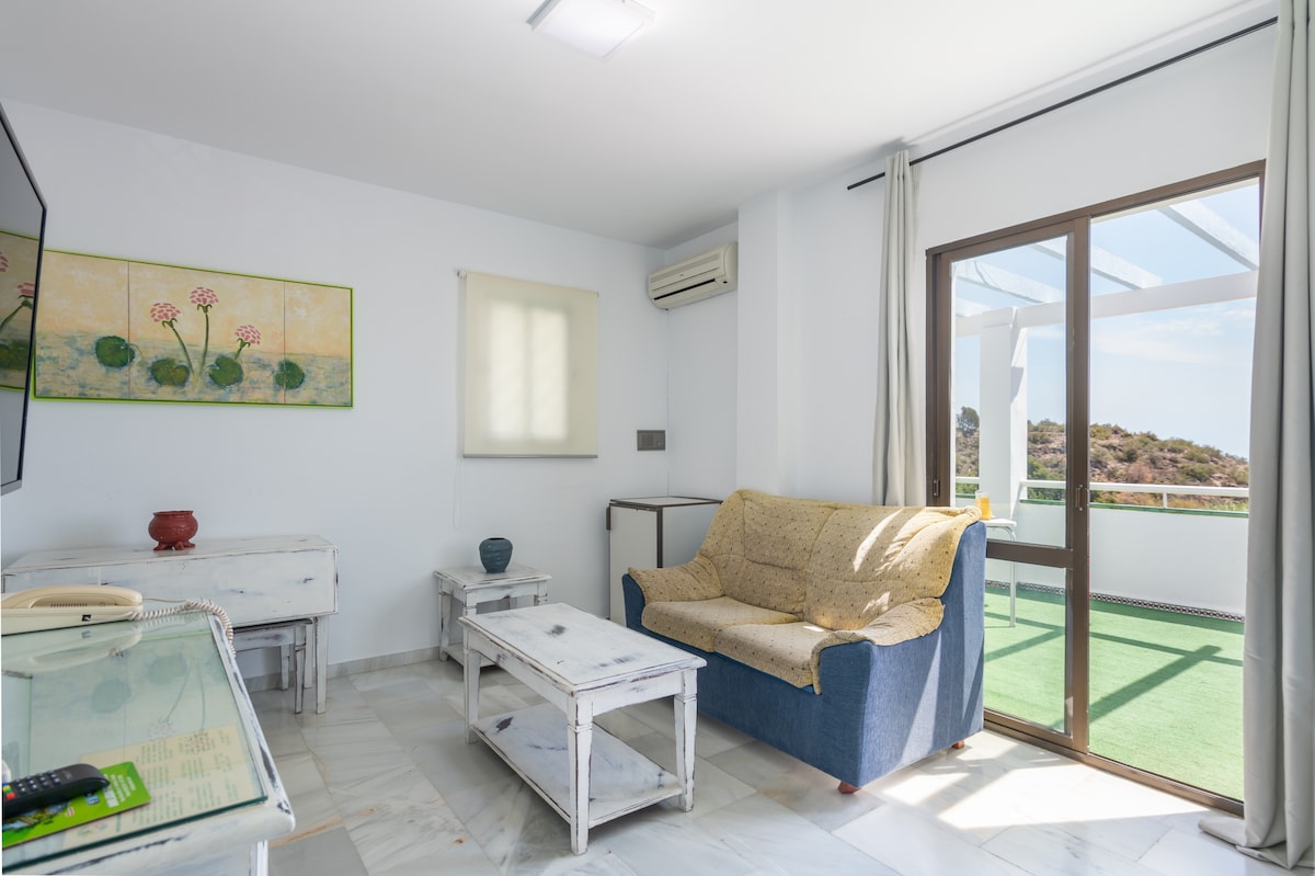 Dans ce logement on respire la tranquillité : détendez-vous avec toute la famille ! à Maro, Nerja. Il se situe au coeur du village, à quelques pas de la plage, des restaurants des restaurants et des commerces. L'appartement dispose de deux chambres, d'une salle d'eau complète, d'une cuisine tout équipée et d'un grand salon avec canapé-lit. Les fenêtres du salon donnent sur une terrasse privée avec vue sur mer.