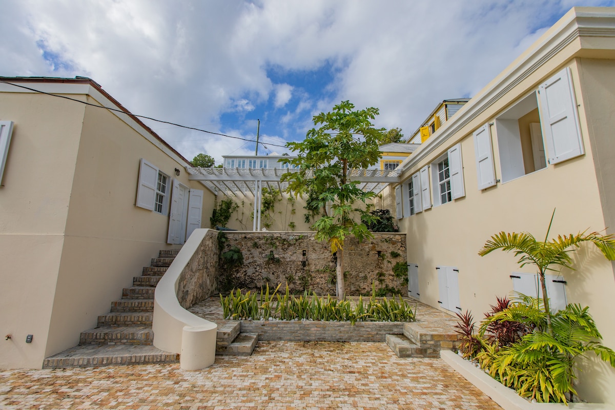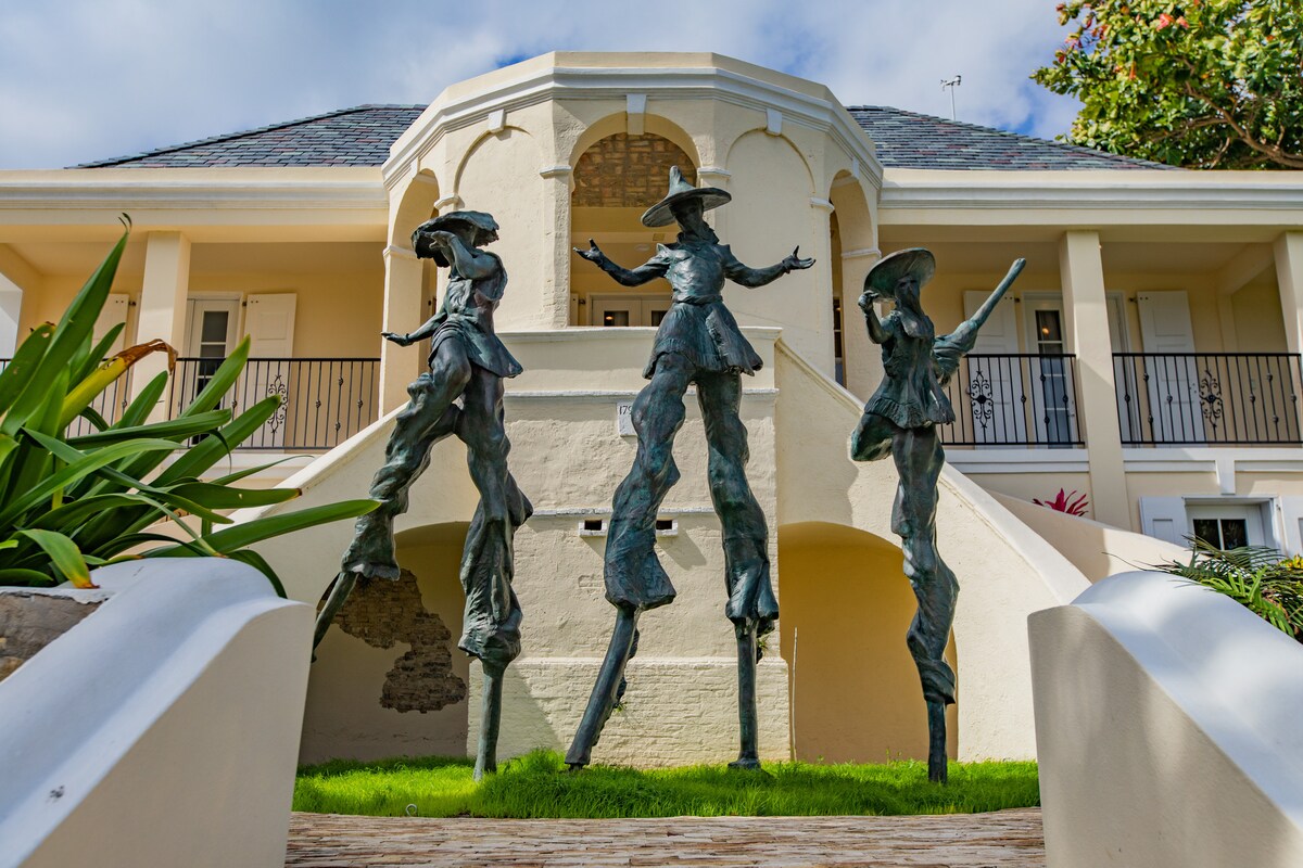 Découvrez un morceau unique de l'histoire de Sainte-Croix à la Moko Jumbie House. Autrefois l'arsenal danois, cette propriété rénovée de 200 ans présente des briques jaunes danoises originales, un grand escalier incurvé et de vieux planchers de pin préservés. La Moko Jumbie House, qui abrite 4 logements Airbnb, reflète la beauté architecturale du Christiansted du début du XIXe siècle. Juste à l'extérieur, vous trouverez également The Guardians, une sculpture saisissante de Ward Tomlinson Elicker, exposée en permanence en hommage à l'art et à la culture locaux.