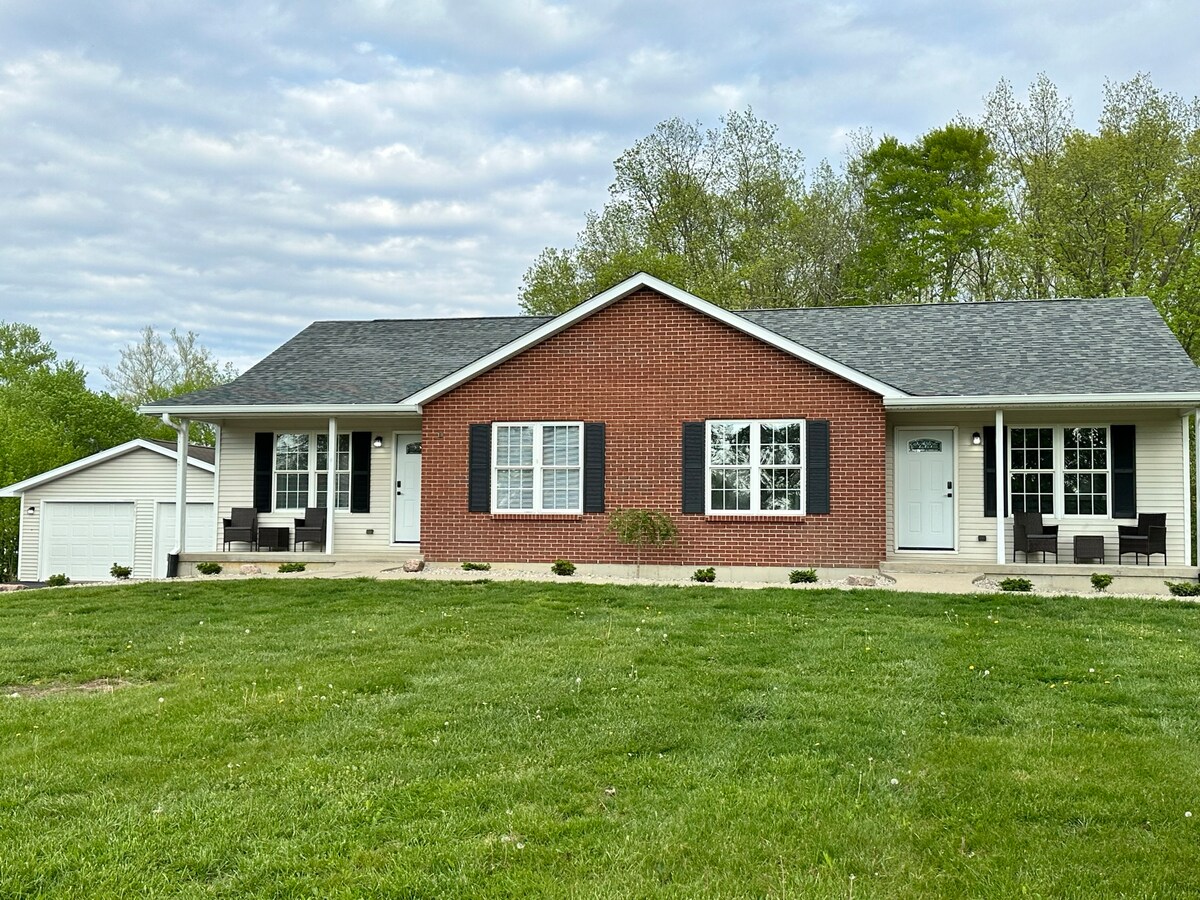 Détendez-vous dans cette retraite isolée nichée tranquillement au bout d'une route de campagne boisée, le long d'un ruisseau vallonné. La cabane était à l'origine deux cabanes érigées dans les années 1850. Dans les années 1970, l'artiste Jim Simon a démonté les cabanes en rondins et les a redécoupées dans la ferme familiale Simon. Red Fox Ridge a été nommé pour le renard roux souvent repéré qui coule sur la crête surplombant la rivière. Beaucoup d'histoire à partager et à faire ! Venez y séjourner un peu. * Pas de frais de ménage * * Proche du musée de la rencontre et de la création de l'arche *