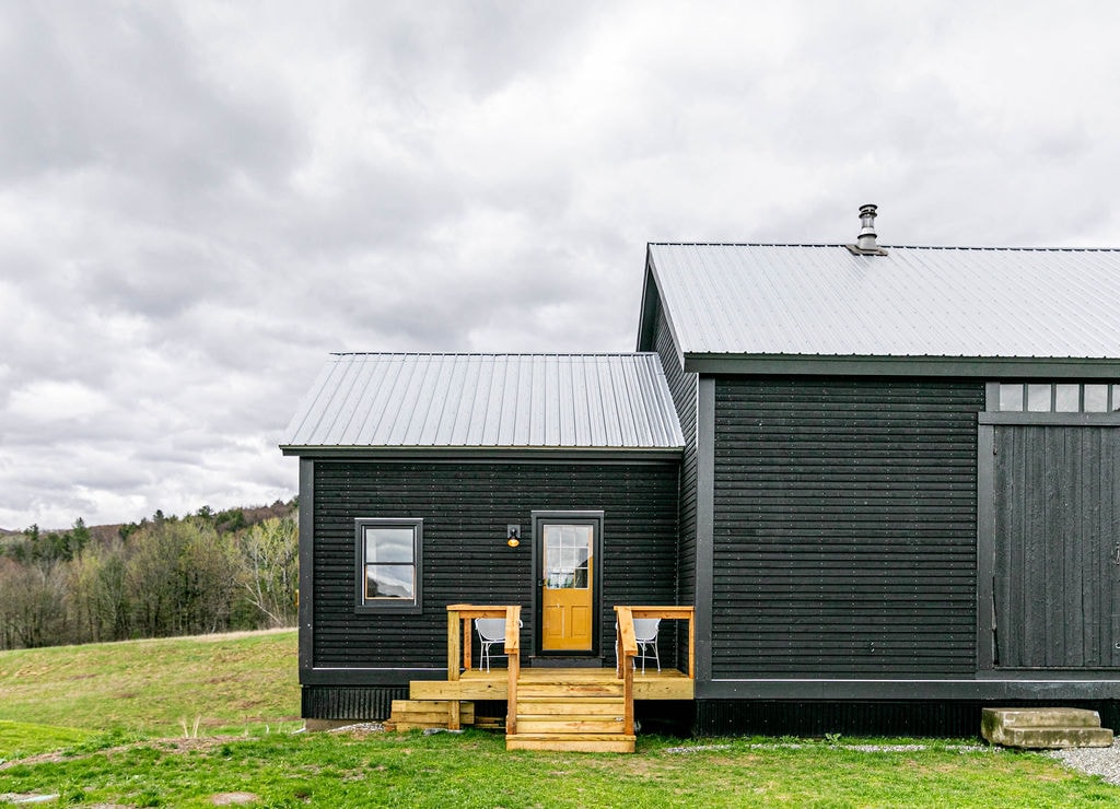 Ce studio annexé à la maison principale affiche un style résolument unique. Design contemporain avec de hauts plafonds, des fenêtres à claire-voie et un puits de lumière. Les espaces comprennent un grand salon/chambre, une cuisine/salle à manger, une salle de bain avec douche à l'italienne et un dressing attenant avec coiffeuse et lavabo. Il y a également un espace extérieur couvert pour en profiter. Le mobilier comprend un lit Queen Size, 3 chaises confortables, une petite table ronde et 4 chaises. L'emplacement est à un peu plus d'un mile du centre-ville de Middlebury.