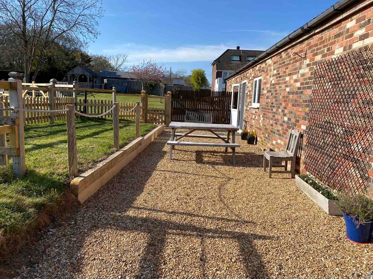 Beautiful self contained annex surrounded by farmland situation in a quiet rural location close to the beach & The New Forest. 12 minutes by car to Lymington. Suitable for up to 2 adults. Well behaved dog welcome (Extra charge of £20 per stay) but not allowed upstairs. Large kitchen, downstairs bathroom with shower, lounge & upstairs double bedroom (kingsize bed). Enclosed private shingle area outside complete with picnic table and bbq. Use of the field directly opposite annex for walking dog.
