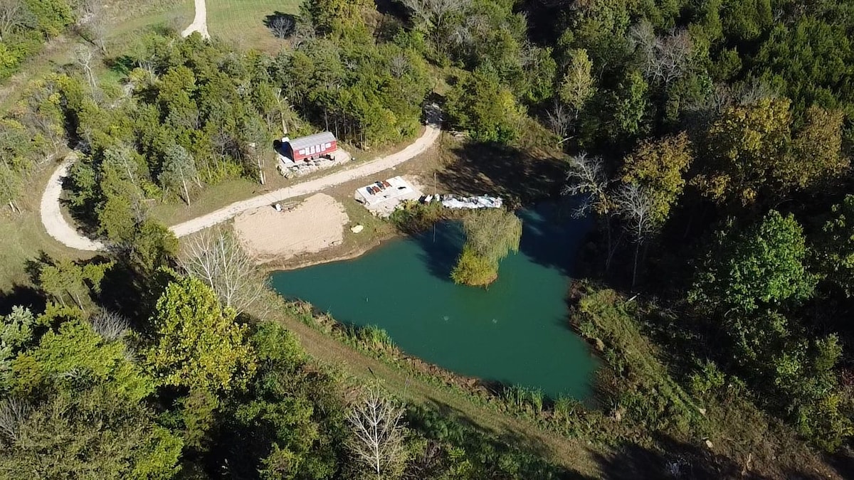 Venez vous amuser dans notre cabane semi-privée située sur un étang rempli. Nous sommes amis des chiens seulement. Cette propriété dispose de 2 cabanes supplémentaires et de 2 maisons disponibles si nécessaire. Chaque espace dispose de 5 acres, créant une expérience semi-privée pour se détendre et profiter du plein air. ***Veuillez noter qu'en raison de la sécheresse, les niveaux de l'étang sont extrêmement bas.****