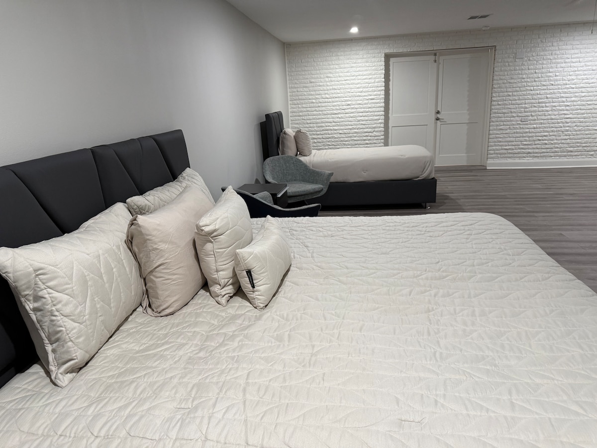 Ce logement spacieux récemment rénové dispose d'une entrée privée avec serrure à digicode. Lit queen size et matelas gonflable queen size. Séjour/salle à manger. Kitchenette avec évier, réfrigérateur, micro-ondes, four grille-pain, cafetière, bouilloire électrique, vaisselle. Salle de bains attenante et lave-linge/sèche-linge, fer à repasser et sèche-cheveux. Télévision par câble, Wi-Fi haut débit, tables d'appoint de chargement USB. Utilisation du porche avant. Stationnement dans la rue. Il est interdit à l'intérieur de l'unité. Animaux acceptés. À distance de marche d'Oak St et du tramway. Voir autres détails.