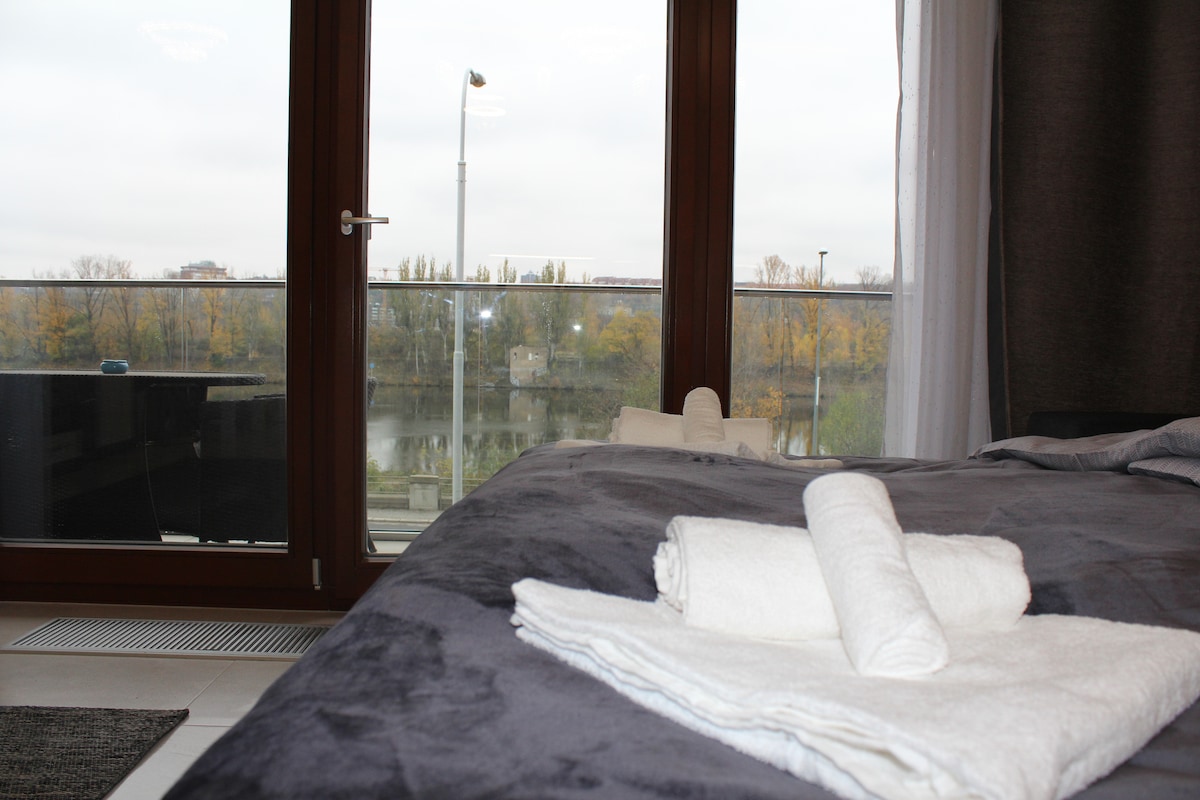 Un appartement très agréable et confortable avec une grande terrasse, une atmosphère agréable et une vue incroyable sur la rivière est situé dans une rue calme avec un excellent accès à la place de la Vieille-Ville, à la place Venceslas et à d'autres monuments importants (environ 10 minutes à pied). L'appartement est situé au 5e étage avec ascenseur et est très calme et paisible. Cet appartement dispose d'une chambre, d'un salon avec un canapé, d'une cuisine, d'une salle de bains et d'une grande, très grande terrasse. Il est idéal pour les couples ou 3 personnes max.