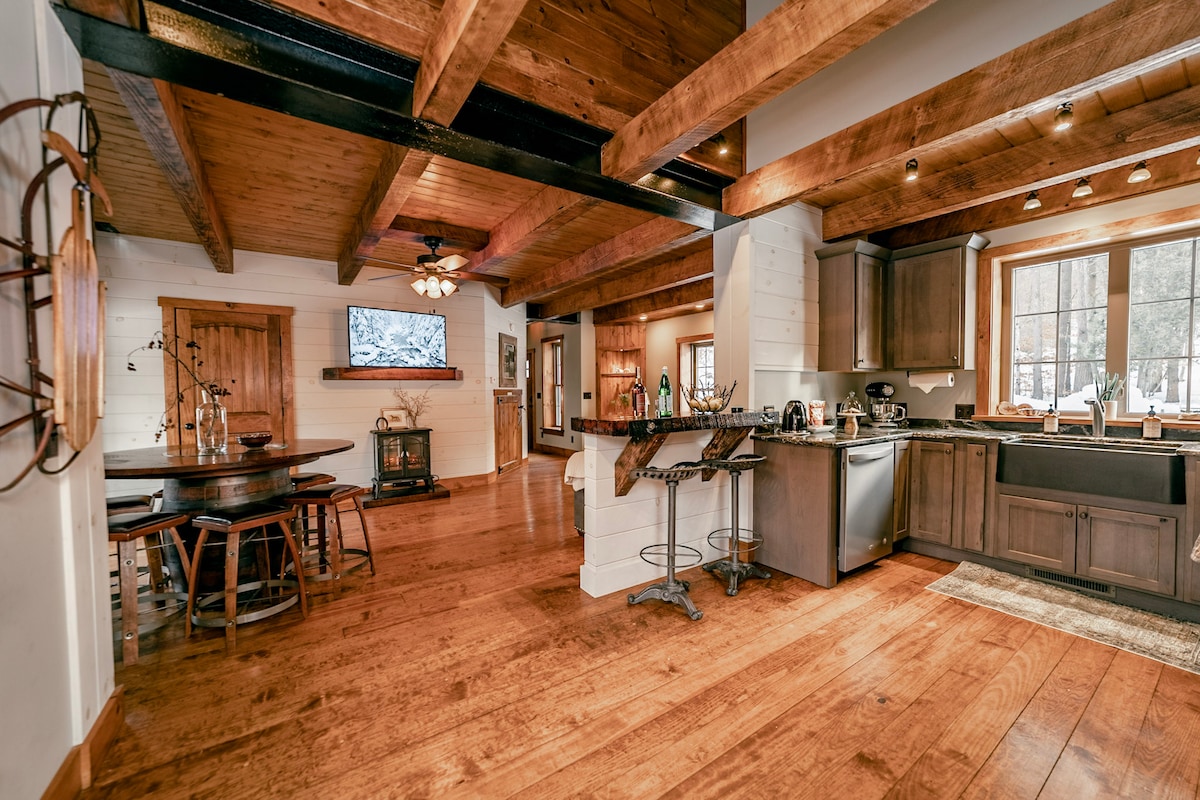 La WheelHouse est un spectacle à ne pas manquer, surtout parce qu'elle dispose d'une roue à aubes unique en son genre de 14 pieds de haut, qui achemine plus de 22 000 gallons d'eau chaque jour ! La maison est située dans une région pittoresque et isolée. Cependant, elle est à seulement 5 minutes de l'épicerie la plus proche et à moins de 20 minutes des meilleurs restaurants et magasins locaux. Dormez dans le luxe sur le nouveau matelas « Stern & Foster Estate » ! Romantique, luxueuse, adaptée aux animaux de compagnie, aux enfants et aux bébés ! Sur le sentier de motoneige (C-4)