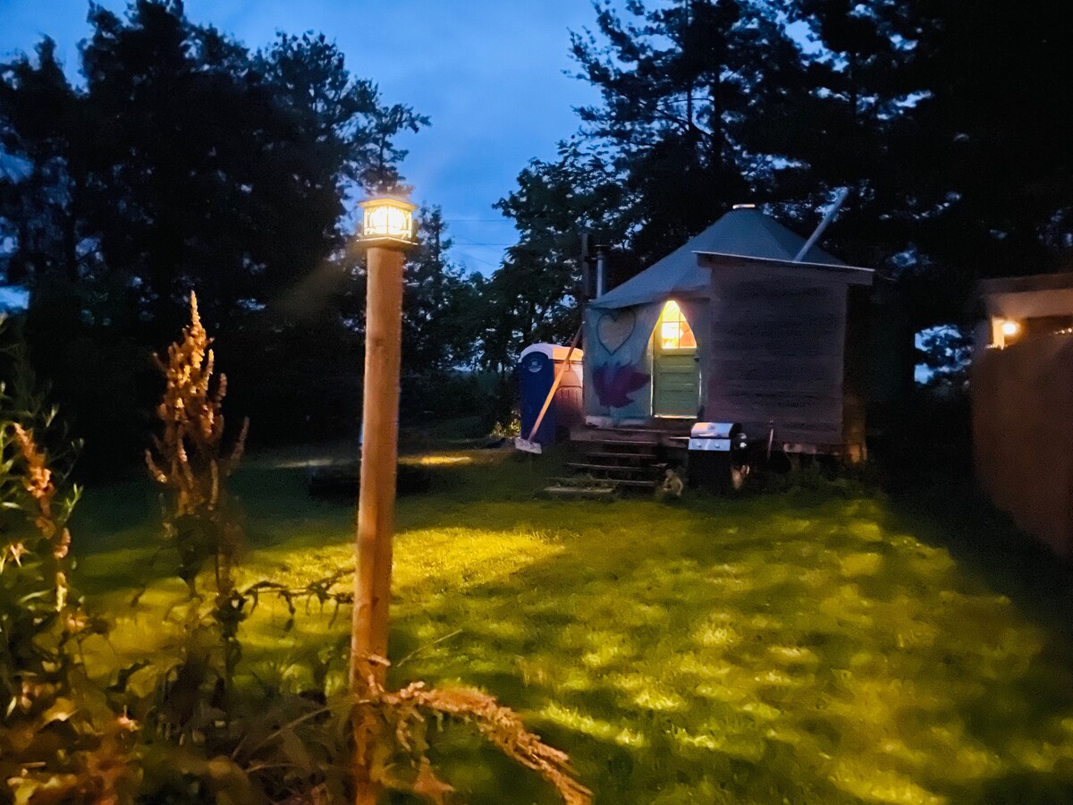 Superbe et belle yourte juste à côté de la rivière Niagara dans une ville charmante. La yourte n'a été construite qu'en 2015 avec amour et soin, conçue personnellement par le propriétaire-constructeur. Il n'y a rien de tel que cette yourte dans la région ! Si le magnifique plafond en bois ne vous étonne pas, les magnifiques détails le feront. Dormez sur un lit queen size confortable avec des draps en coton sans parfum et un espace supplémentaire pour une personne de plus sur un grand canapé confortable si nécessaire. Séjournez dans une magnifique yourte pour la célèbre saison de Gateway Harbor et le Canal Fest !