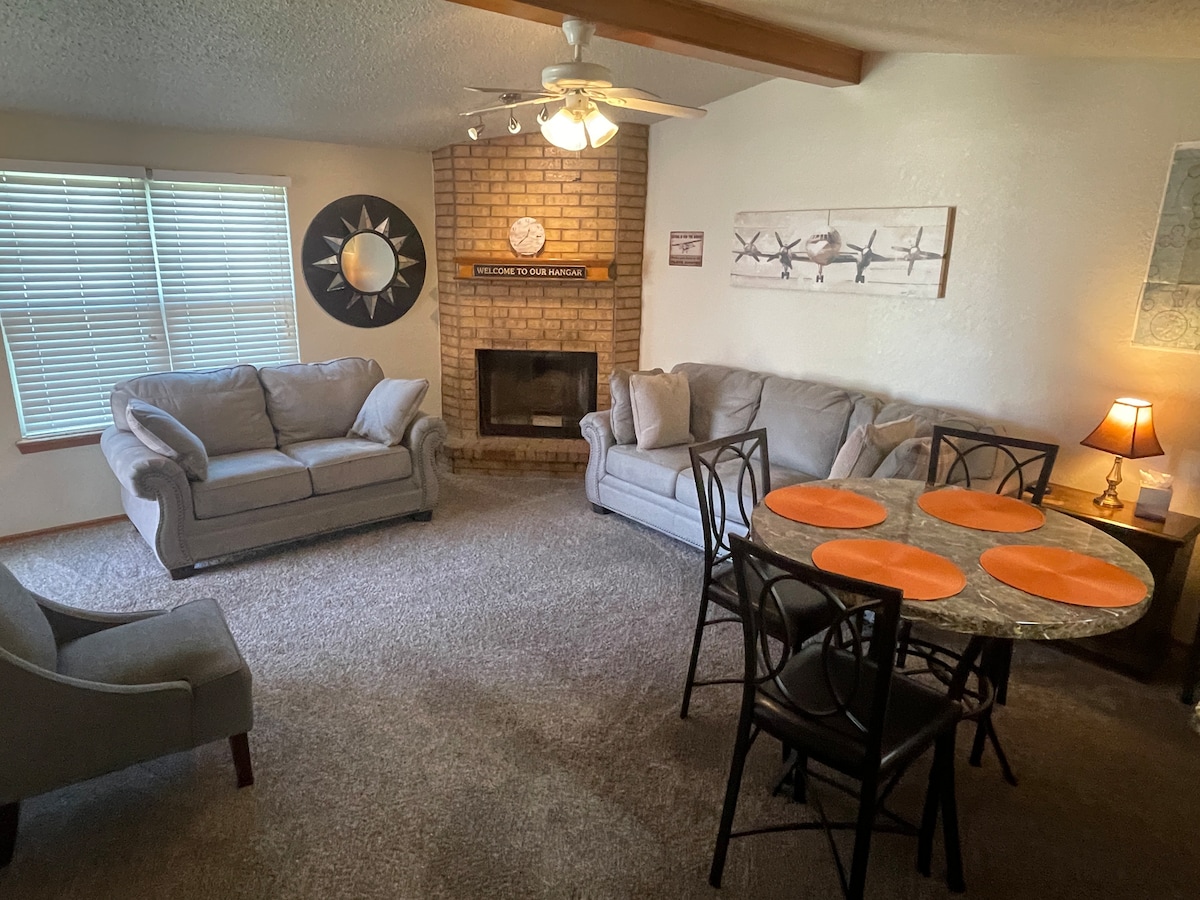 Conçu pour offrir tous les extras d'un bon hôtel, mais avec l'ambiance et l'espace d'une maison. C'est votre endroit pour vous installer confortablement, vous détendre et profiter ! Située sur un terrain d'angle dans un quartier familial, cette maison dispose d'une cuisine complète, de deux patios et d'une cour arrière entièrement fermée. Le foyer et les s'mores gratuits sont également à votre disposition, dans cette belle et confortable maison.