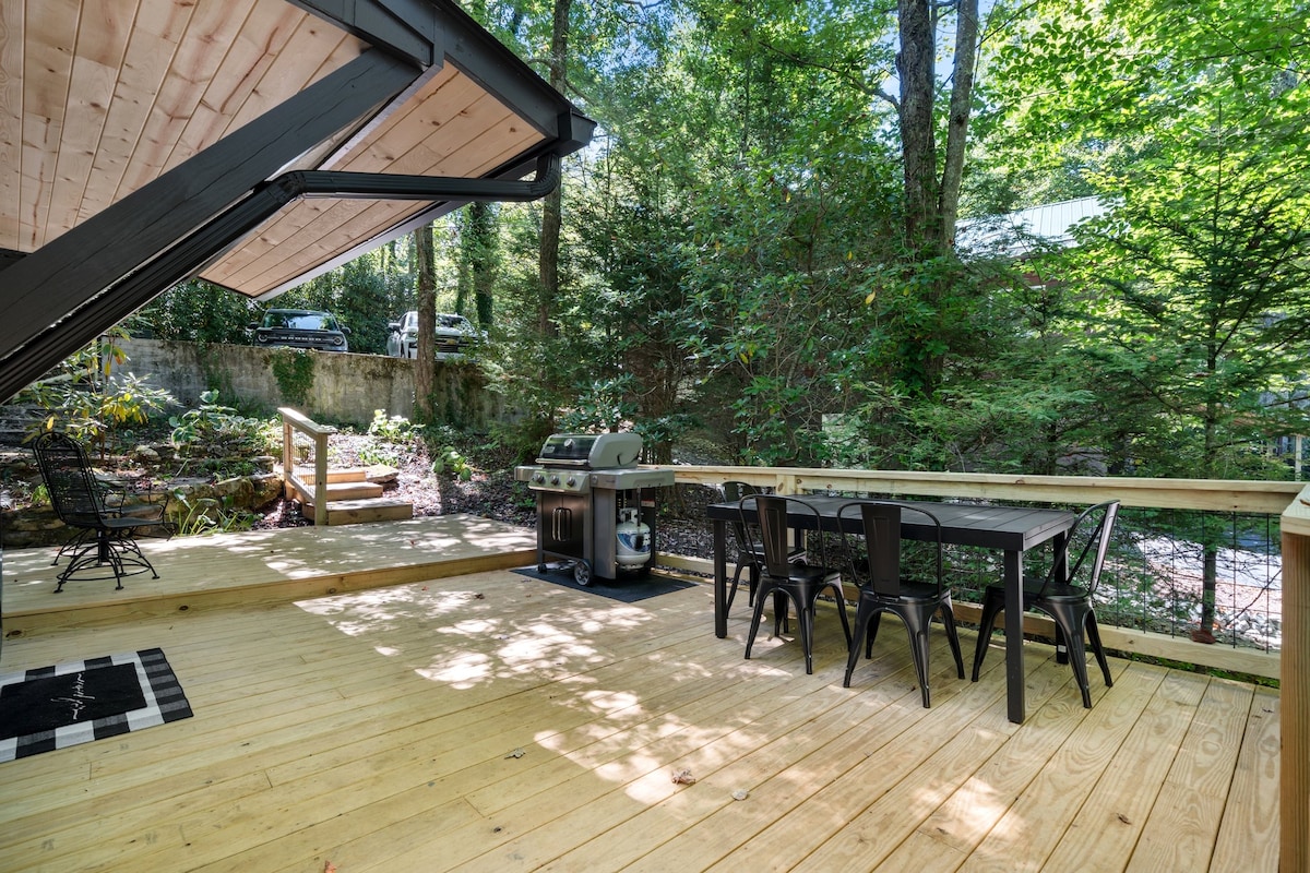 Évadez-vous dans une cabane restaurée au bord d'un ruisseau dans les montagnes de Caroline du Nord, près de Banner Elk. Cheminée en bois confortable, foyer, WiFi rapide, cuisine complète et animaux acceptés. À quelques pas de Pisgah Forest, à quelques minutes des vignobles, du ski et de la randonnée : pas de frais de ménage ! Lumineuse et aérée, avec des plafonds voûtés, des planchers de bois franc et des finitions modernes, cette retraite privée allie charme rustique et confort moderne : l'endroit idéal pour se détendre, se ressourcer et explorer le High Country.