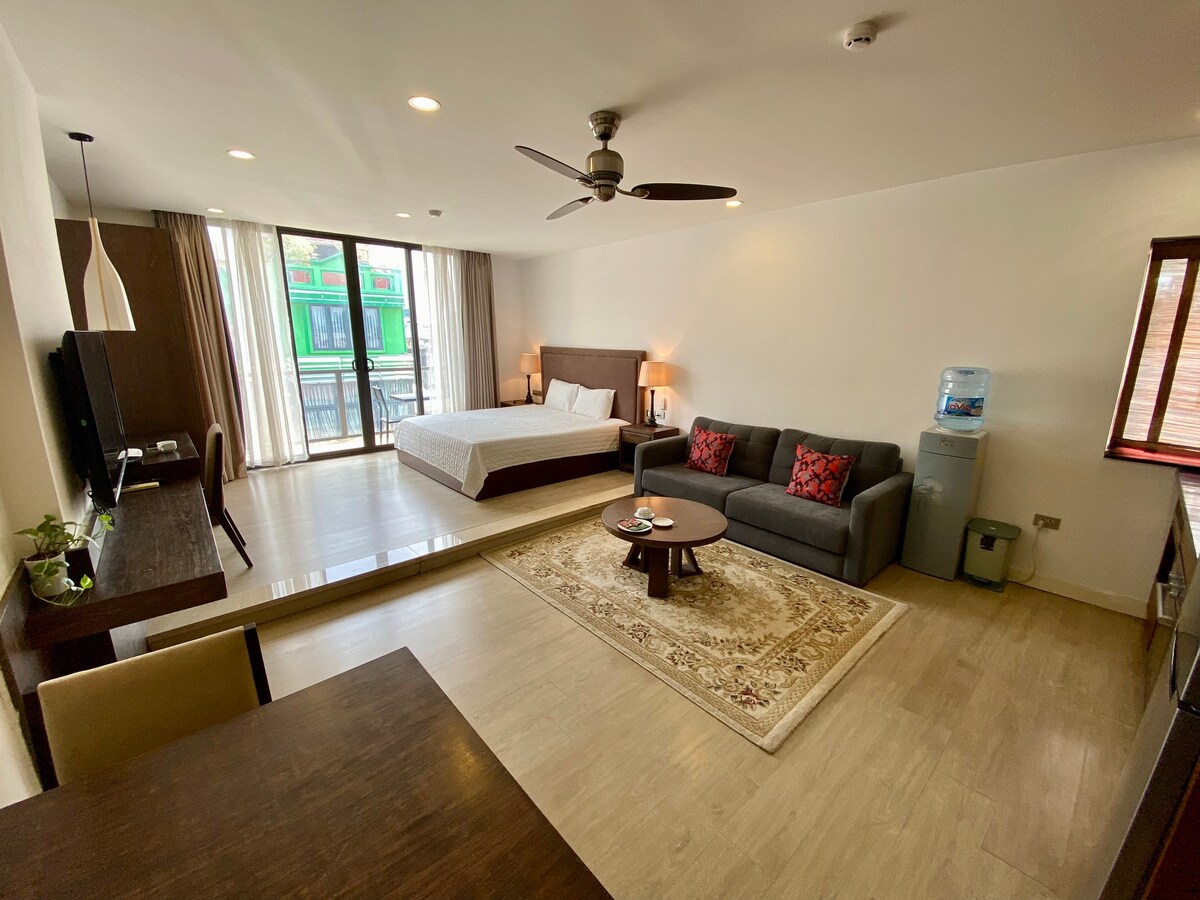 Retraite paisible à seulement 5 min à pied du lac Hoan Kiem et à distance de marche du Vieux Quartier, de la rue Train, des restaurants locaux et des attractions de haut niveau. Situé dans un immeuble local avec ascenseurs, l'appartement dispose d'un spacieux coin salon, d'une belle salle de bains avec baignoire, d'un coin travail et d'un lave-linge/sèche-linge gratuit. Idéal pour les couples, les familles ou les voyageurs d'affaires cherchant à explorer Hanoi avec confort et commodité.
