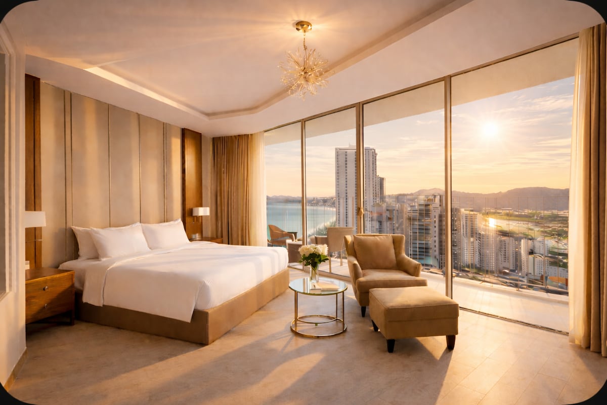 Ce logement moderne et bien aménagé présente un design spacieux et ouvert, mettant l'accent sur la lumière naturelle et l'élégance minimaliste. La zone principale est dominée par un lit confortable avec une tête de lit rembourrée élégante et des tons neutres créent une atmosphère calme et accueillante. À côté du lit se trouve une grande fenêtre avec des rideaux du sol au plafond, offrant une vue imprenable sur l'océan. Ce logement est idéal pour ceux qui recherchent un mélange de confort, de style et de fonctionnalité dans un emplacement urbain privilégié !