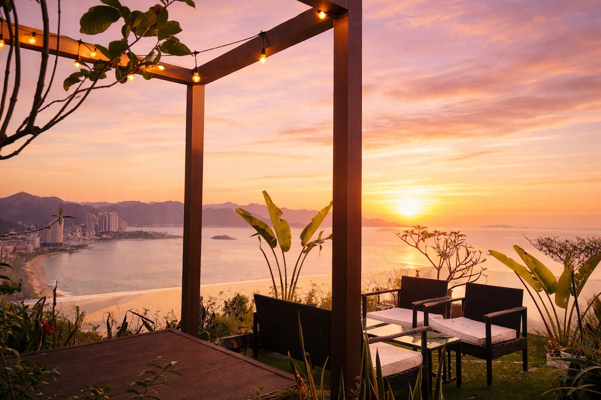 Ce logement est considéré comme une villa de villégiature luxueuse, calme, fraîche et sécurisée. À seulement 4 km du centre-ville, il est très pratique pour vous de vous rendre aux attractions touristiques. La villa fait face à la mer, de sorte que l'espace de la villa accueillera la lumière fraîche du soleil du matin et la vue sur la mer bleue vous fera ressentir l'énergie paisible de la ville côtière. La villa est entièrement équipée et la maison est toujours pleine d'arbres, ce qui vous donnera l'impression d'être chez vous.