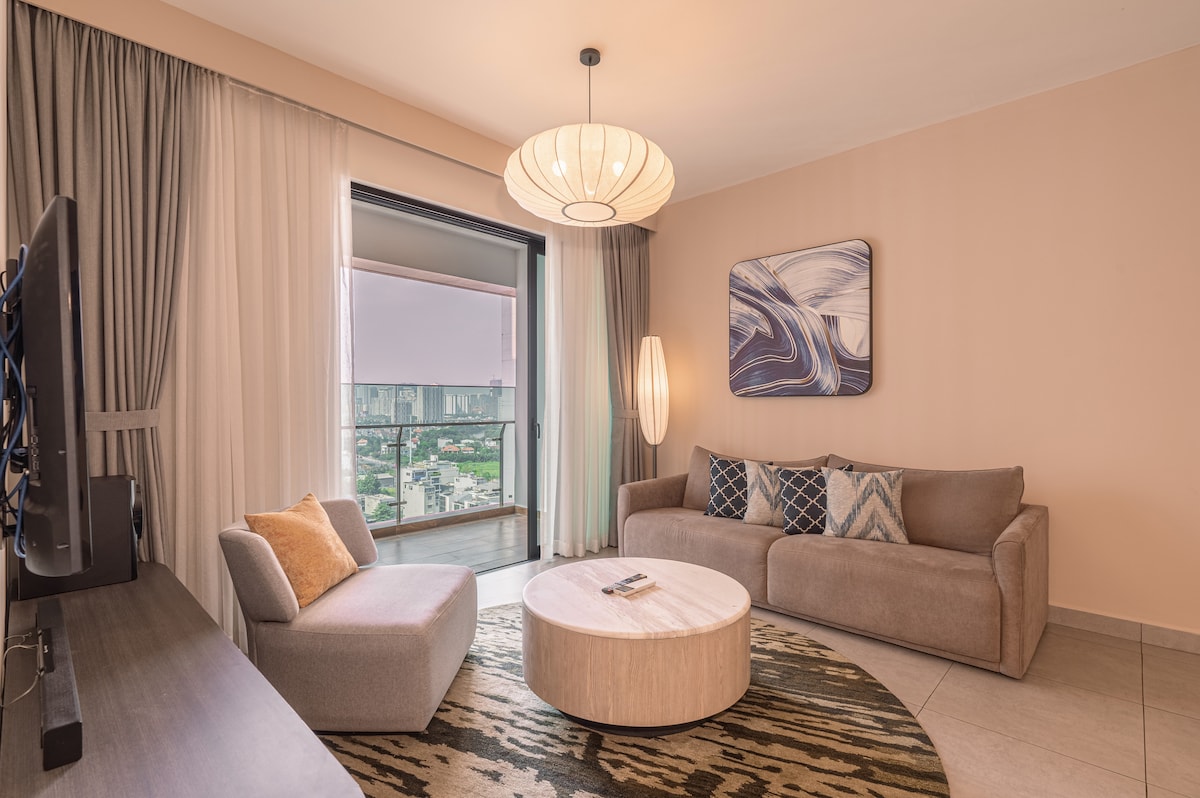 Please be advised that there is ongoing construction in the surrounding area. While the work does not affect access or the quality of the apartment, some daytime noise may be audible. You will feel relaxed in this calm and stylish space. There are many convenience stores, restaurants, and coffee shops nearby, along with access to infinity pool and gym. 15 mins to reach Thao Dien This 1-BR condo has beautiful city view 1 bedroom 1 bathroom Kitchen and living room Smart TV with Netflix function