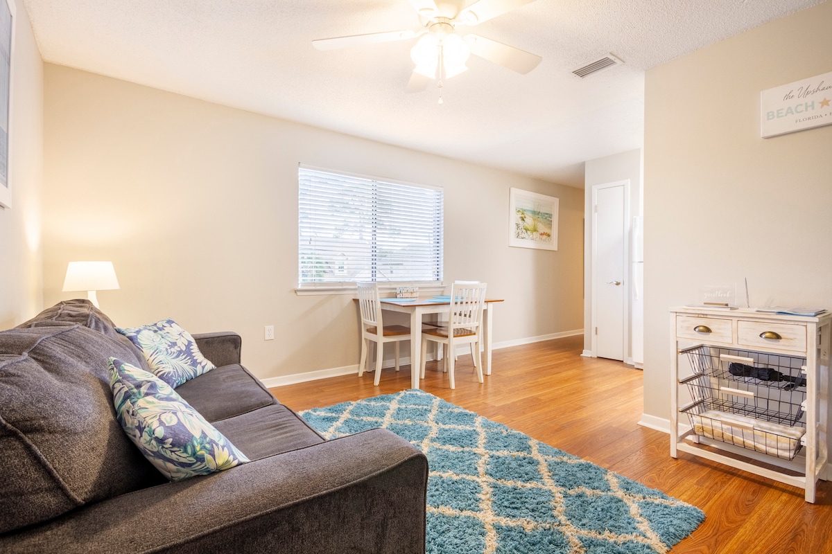 Studio au rez-de-chaussée dans le Sandestin Golf & Beach Resort avec terrain de golf serein et vue sur le lac. À quelques pas de la salle à manger et de divertissement de Baytowne Wharf. Comprend un lit King, un canapé-lit Queen, une salle de bain complète et une kitchenette avec micro-ondes et réfrigérateur de taille moyenne. Profitez du Wi-Fi, de Netflix, de l'accès au tramway du complexe hôtelier et de l'équipement de plage dans le garage. Voiturette de golf disponible en option : renseignez-vous sur la disponibilité et les frais. Parfait pour une escapade relaxante au cœur de Sandestin. Et oui ! Vous pouvez conduire la voiturette de golf jusqu'à la plage.