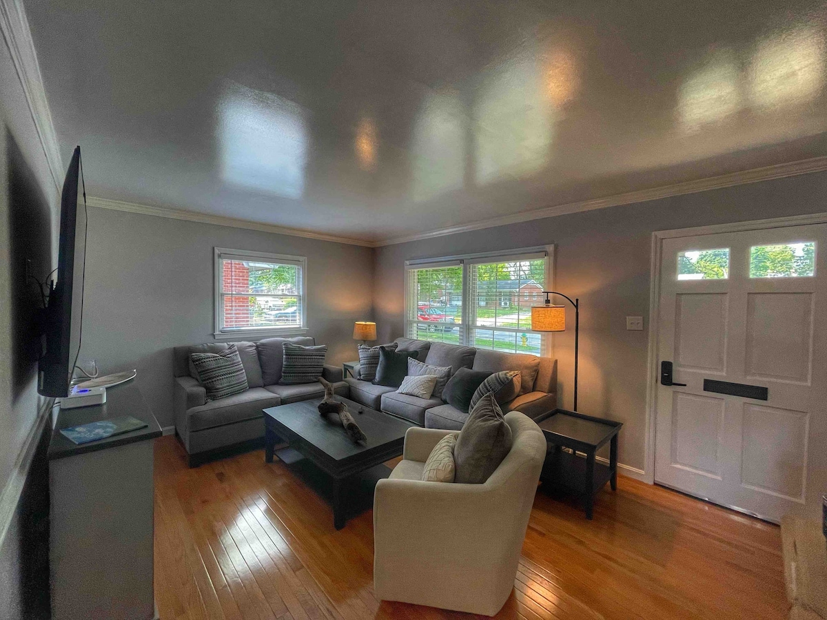 Évadez-vous et installez-vous confortablement dans cette maison privée propre et confortable de deux chambres et deux salles de bains située au centre d'un quartier pratique et calme, à moins de cinq minutes à pied de Kroger, de restaurants, de cafés et d'un studio de yoga. Fayette Mall et UK facilement accessibles en voiture. Cuisine entièrement équipée pour cuisiner des repas, canapé inclinable pour se détendre, télévision 65", livres et jeux. Un nouveau lit King Size Sealy et un lit superposé avec un matelas double et deux matelas jumeaux (un lit gigogne). Un lave-linge et un sèche-linge sont à votre disposition.