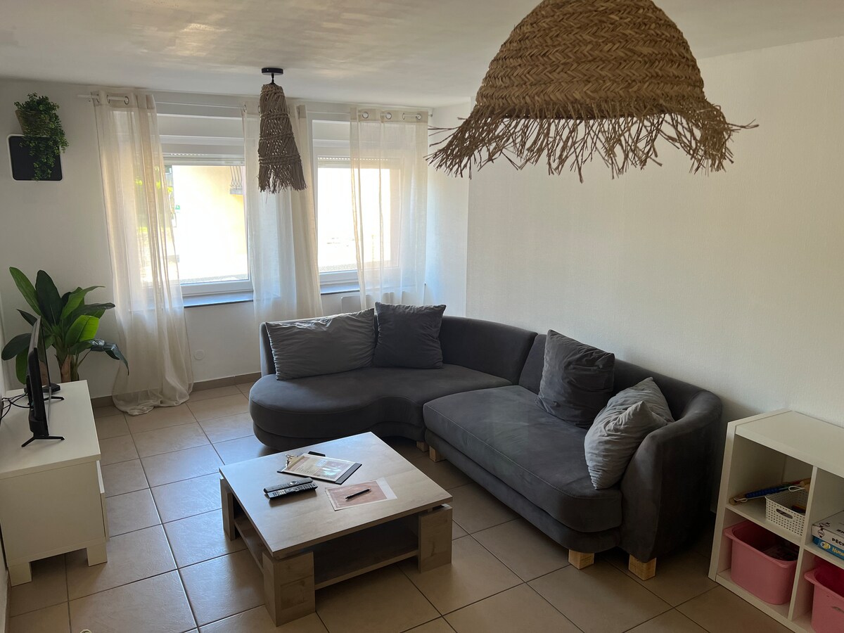 Que vous soyez là pour affaires ou pour le plaisir, profitez de ce spacieux logement. A 4 minutes de SARREBOURG PROCHE CENTER PARC, PARC DE SAINTE CROIX, PLAN INCLINÉ - 6 Personnes : 1 Lit 160 x 200, 1 Lit 140 x 200, 1 Canapé lit 140 x 200 - BÉBÉS et ENFANTS : 1 lit bébé, chaise haute - LINGE DE LIT + SERVIETTES FOURNIS et LAVE-LINGE dans le logement - WIFI, TV HD, NETFLIX - Four, micro-ondes, grille-pain, bouilloire, cafetière SENSEO Dosettes café, thé, sucre fournis PARKING GRATUIT