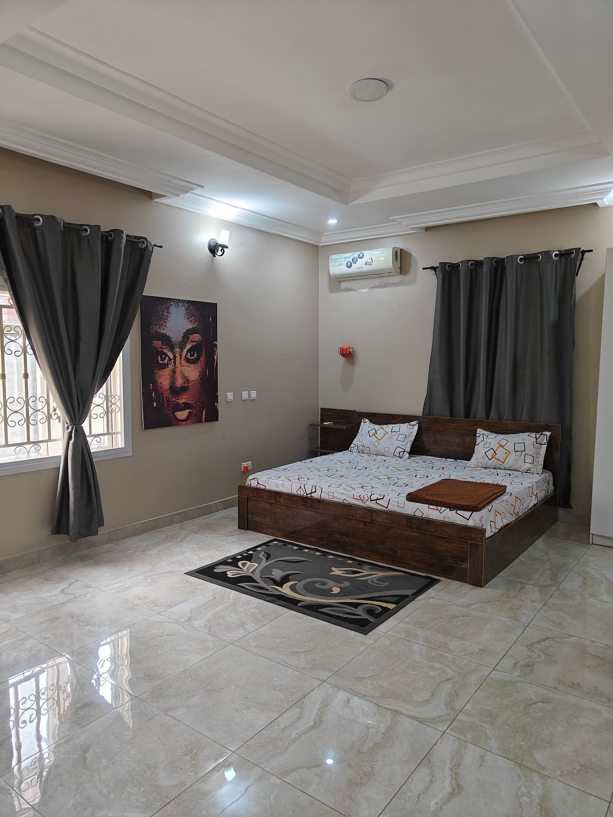 Welcome to Your Home Away from Home! Relax in this modern 2-bedroom retreat designed for comfort, convenience, and style. Perfect for families, couples, or business travelers, our villa offers everything you need for a refreshing stay in Abuja. What You’ll Love: • Bright and spacious living area with cozy seating & TV in every room. • Access to a refreshing pool with gazebo • Free continental breakfast for each room. Book your stay today and enjoy the comfort of a place that feels like home.