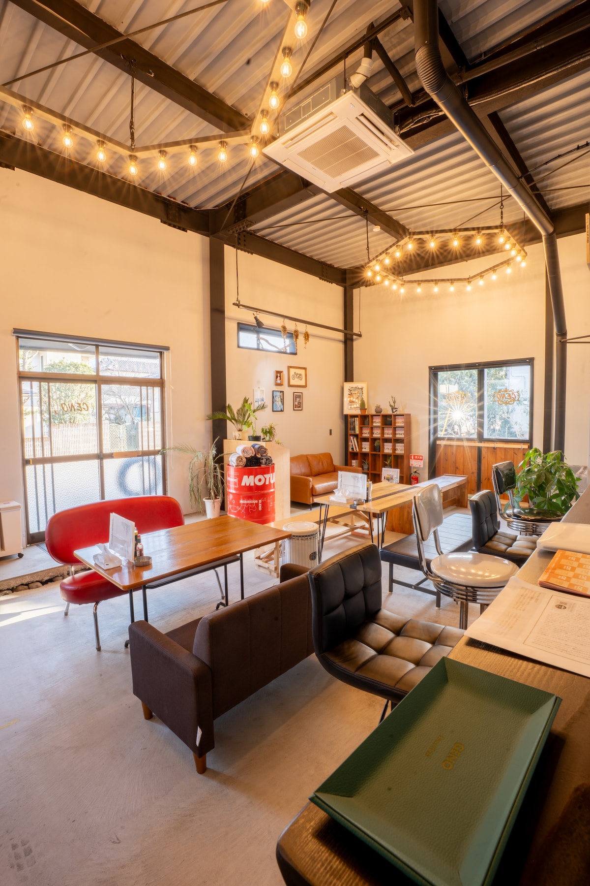 栃木県矢板市にある一棟貸切タイプの宿泊施設です。最大10名まで宿泊可能な広々とした和室があり、友人同士の旅行、家族旅行、スポーツ合宿、ワーケーション等のご利用に最適です。 同一建物内にはカフェを併設しており、カフェ営業中のL.O 17:30前までにチェックインしていただければ、カフェメニューの提供も可能です。お早めにチェックインして、コーヒーを飲みながらゆっくりして下さい。 カフェ営業終了後はカフェスペースをリビングとしてご利用いただけます。保健所の指導によりキッチンは使用不可のため、リビングスペースのみご活用ください。ご宿泊者様専用のホットプレートと食器類をご用意しておりますので、ご自由にお使い下さい。 静かで開放的な空間は大人数での語らいにぴったりで、バスルームや各種アメニティも完備。着替えのみで気軽に滞在できます。 矢板市周辺は自然豊かで、日光・那須エリアへ車で約1時間とアクセスも良好です。冬季シーズンはウィンタースポーツも盛んです。仲間とウィンタースポーツを楽しんだ後、当施設でごゆっくりしてはいかがでしょうか。一棟丸ごと貸切のプライベートな宿で、特別な思い出をお作りください。