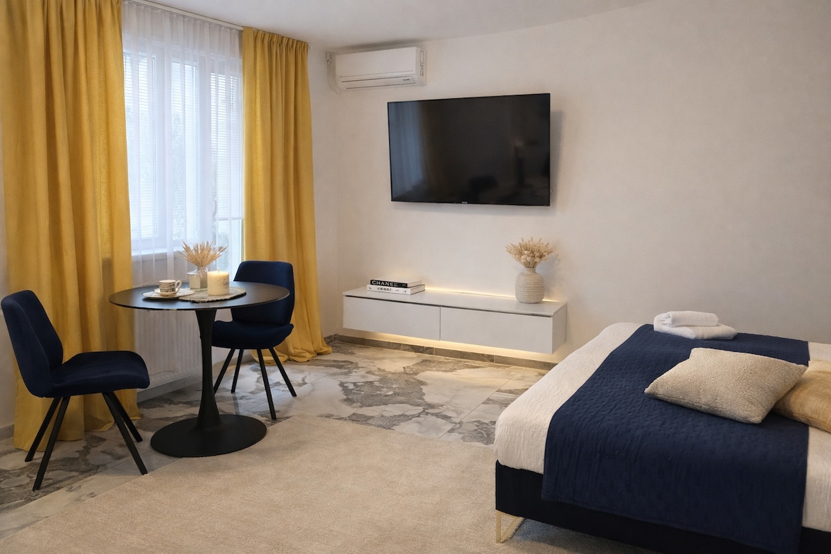 Vitajte v srdci Trnavy! Zažite jedinečnú atmosféru starobylého mesta priamo z pohodlia nášho kompletne zariadeného apartmánu, ktorý spája štýl, útulnosť a moderné vybavenie. Apartmán sa nachádza v samotnom centre Trnavy, len pár krokov od kaviarní, reštaurácií, kultúrnych pamiatok a mestského života. Čo ponúkame? – Priestranné a svetlé priestory – Plne vybavenú kuchyňu – Pohodlnú manželskú posteľ – Rýchle Wi-Fi – Smart TV – Kávovar a čajový kútik – Štýlový interiér s dôrazom na detail