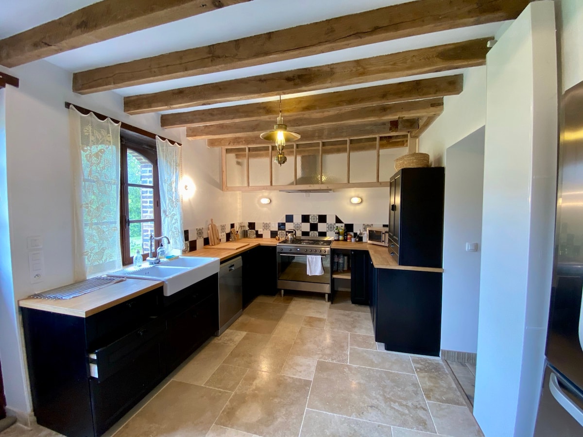 Jolie maison percheronne en colombage, rénovée de fond en combles en 2010 avec tout le confort, mais en lui gardant toute son âme. Un endroit où tout le monde semble se sentir bien, avec des journées au soleil dans le grand jardin plein sud, ou près de la grande cheminée l’hiver. 2 chambres cosy au 1er étage (1 avec lit double et 1 à 2lits simples), et en bas, après le grand salon/s à manger de 50 m2, un petit bureau avec 1 lit simple et une grande cuisine equipée pleine de lumière. A bientôt