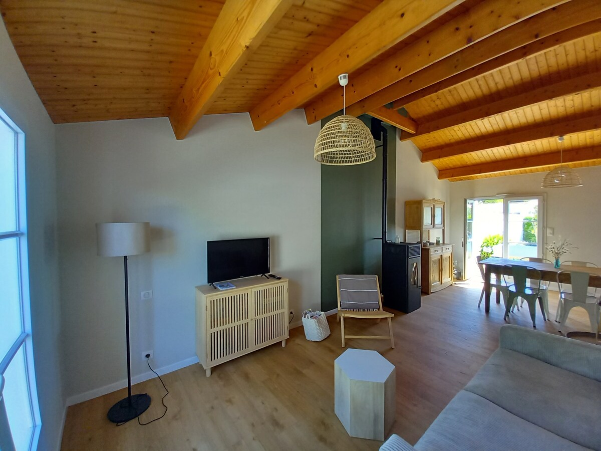 maison typique indépendante avec espace extérieur séparé de celui des propriétaires . terrasse plein sud . Grande cuisine équipée, SDB et chambre /salon (même pièce d'environ 25 m²) .Calme assuré; 2 mn d'une jolie plage et spot de pêche à pieds. Commerces à proximité. Nombreuses pistes cyclables . Possibilité linge de lit fourni 30 EUROS en sus. ménage 40 euros pour 2 nuits , 60 euros au delà HORS PÉRIODES SCOLAIRES POSSIBILITÉ DE LOUER 2 NUITS MINIMUM