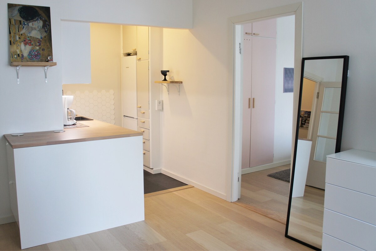 Studio confortable près du centre ville. À 700 m de la gare. Le quartier est paisible et pourtant il n'est qu'à quelques minutes à pied du centre ville. Bus 13 depuis la gare, arrêt de bus à 150 m de l'appartement. Grande promenade au bord du lac - passe par le parc d'attractions. Une boutique (380 m) et un bar à musique sont à proximité. Un sauna gratuit est à votre disposition dans la copropriété. Netflix. Un parking gratuit est disponible 2 à 4 heures en semaine. Le week-end, c'est gratuit. Possibilité de louer une place de voiture dans la cour. Paiement en espèces.
