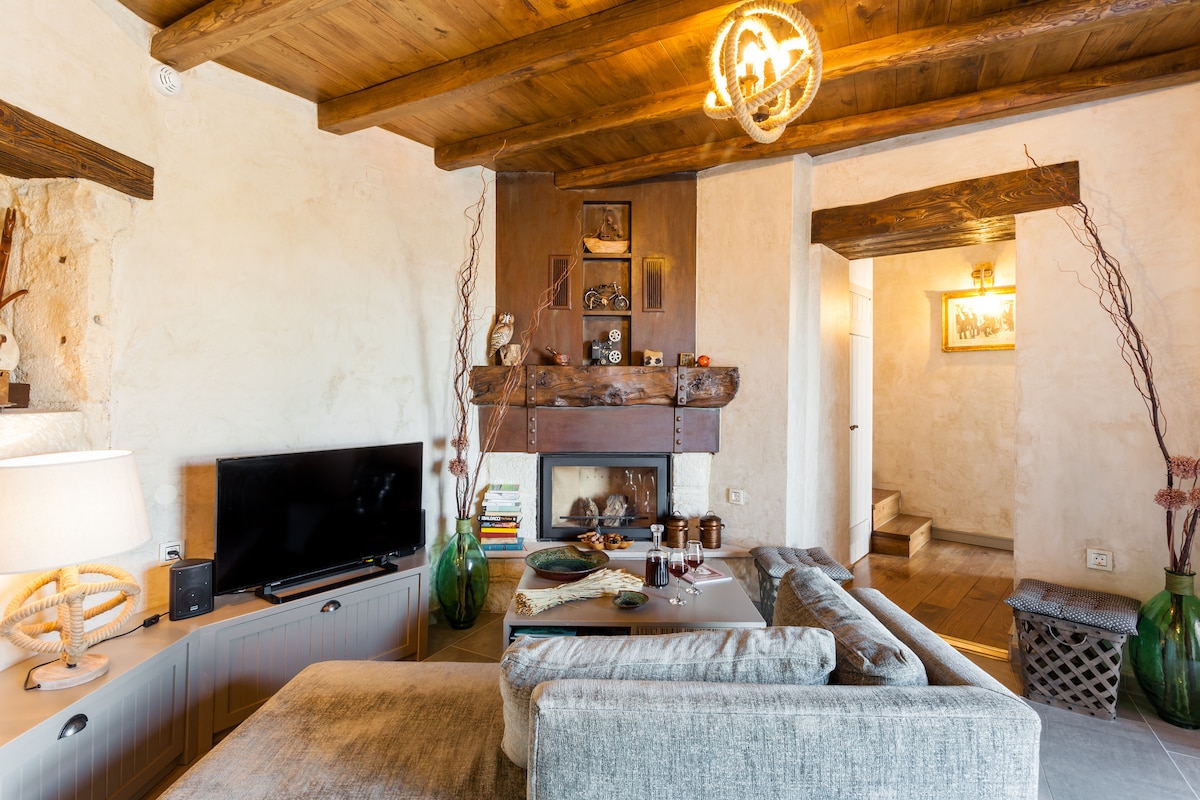 Un complexe en pierre entièrement rénové construit au sommet de trois anciennes grottes grecques. C'était autrefois une usine vénitienne de pressage d'olives. C'est maintenant une maison de vacances contemporaine avec deux piscines (intérieure et extérieure) et un jardin de légumes biologiques et de fruits locaux.