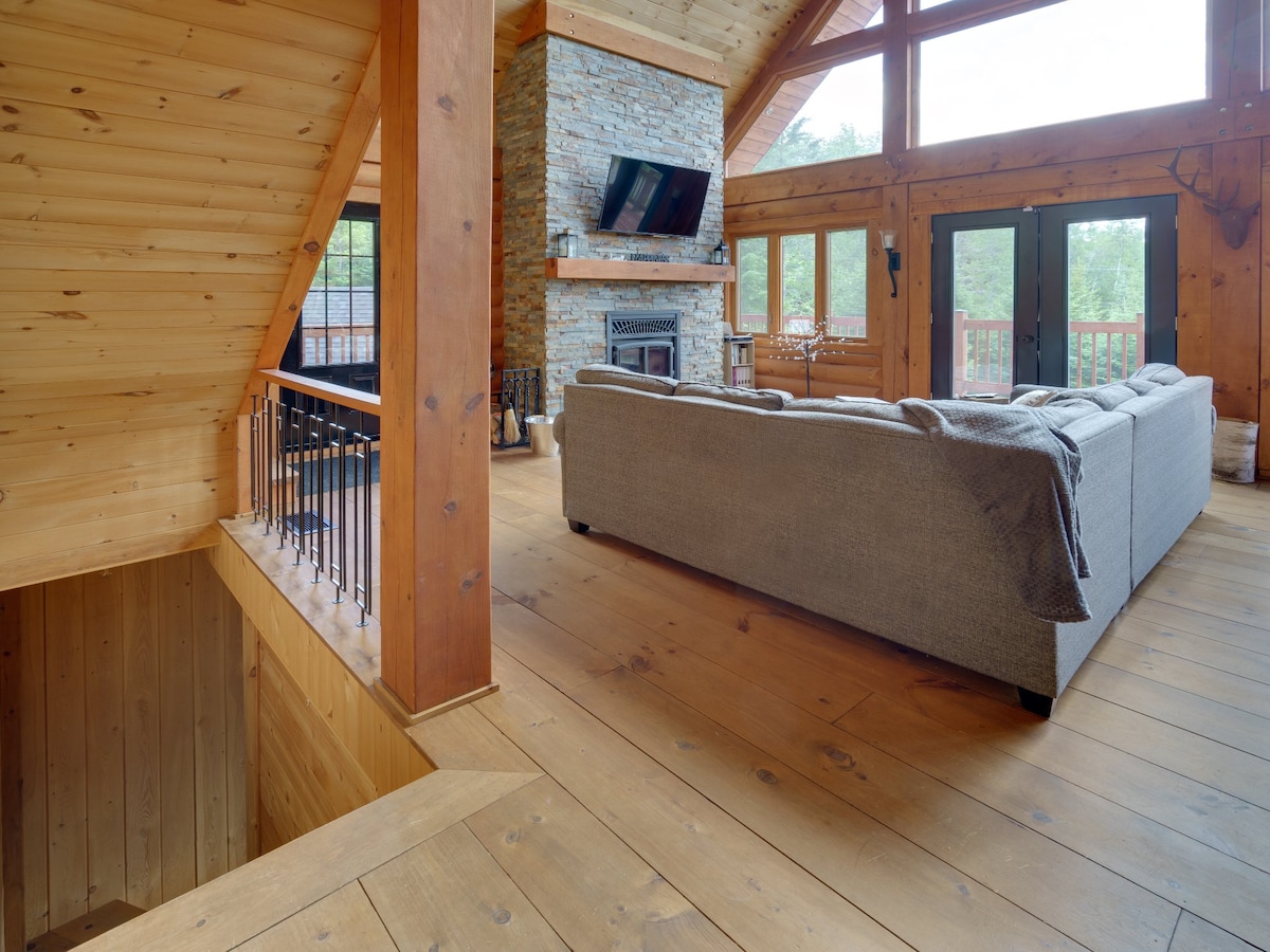 Grand chalet rustique et chaleureux : bord de l’eau, spa, foyer à bois intérieur et extérieur. Un lieu idéal pour relaxer en couple, en famille ou entre amis. Laissez-vous immerger dans la nature des Laurentides et venez profiter des baignades, kayaks et randonnées. A rustic and warm wooden chalet : waterfront, spa, wood-burning fireplace. Ideal place to relax in couple, with your family or friends. Be immersed in the nature of the Laurentides and enjoy the swimming, kayaking and hiking.