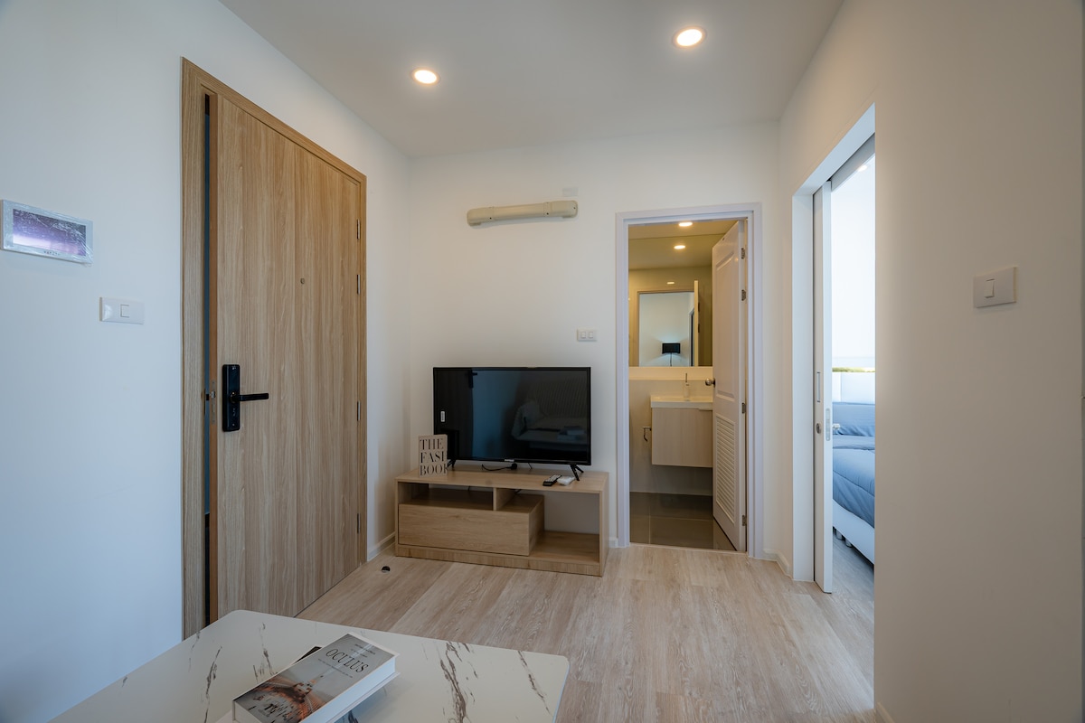 ✨ 🌈 This duplex is perfect for digital nomads / long-term stays. Enjoy super-fast internet that keeps you connected with the world, whether you’re working, streaming, or video-calling. The neighborhood is full of conveniences – 24/7 convenience stores, lively markets, restaurants, and entertainment spots just steps away. After a productive day, relax in comfort with an open view and no blockages – the ideal balance of work and rest.” - lot of space 44 sq.m - Just 150 meters to the SkyTrain
