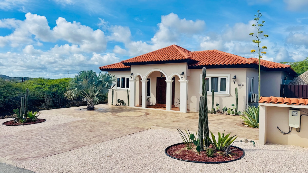 La villa Cadushi (cactus) a été construite en gardant à l'esprit la résilience du cactus. Une villa 100 % privée située en pleine nature, avec une terrasse spacieuse entourant un jacuzzi pour 5 personnes avec une vue magnifique sur une clôture de cactus en arrière-plan, connue localement sous le nom de « Trankera ». Sirotez votre tasse de café le matin ou profitez d'un après-midi de détente avec un beau coucher de soleil dans un hamac sur la terrasse tout en grillant sur le barbecue. Détendez-vous dans le petit jardin confortable et bronzez.