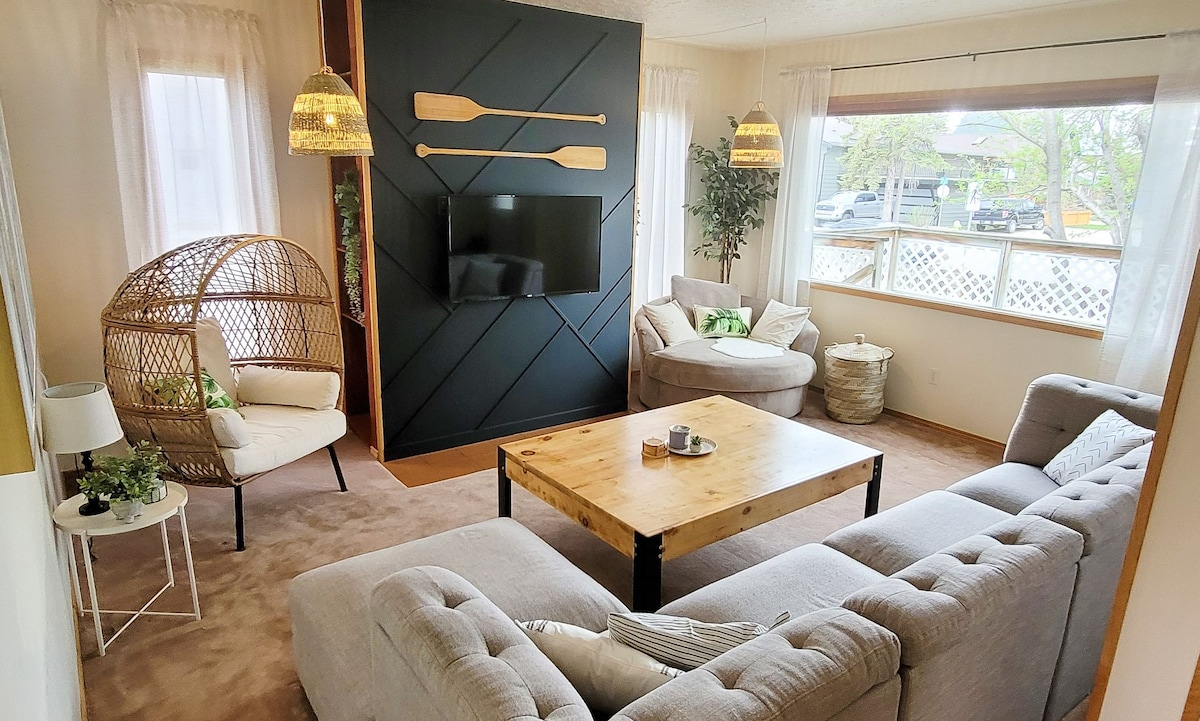 Bienvenue dans notre refuge à Sylvan ! Nous sommes ravis que vous séjourniez dans notre chalet confortable et que ce soit une maison loin de chez vous pour votre séjour à Sylvan Lake ! Nous sommes situés à seulement un demi-pâté de maisons d'une plage tranquille, dans le quartier paisible de Cottage. Promenez-vous sur la magnifique promenade jusqu'aux restaurants du centre-ville, aux parcs pour enfants, aux magasins et aux brasseries locaux, ou passez la journée à la plage et profitez d'une pagaie relaxante. Notre cabane confortable dispose d'un foyer, de terrasses avant et arrière, d'une grande cour et d'un parking fourni.
