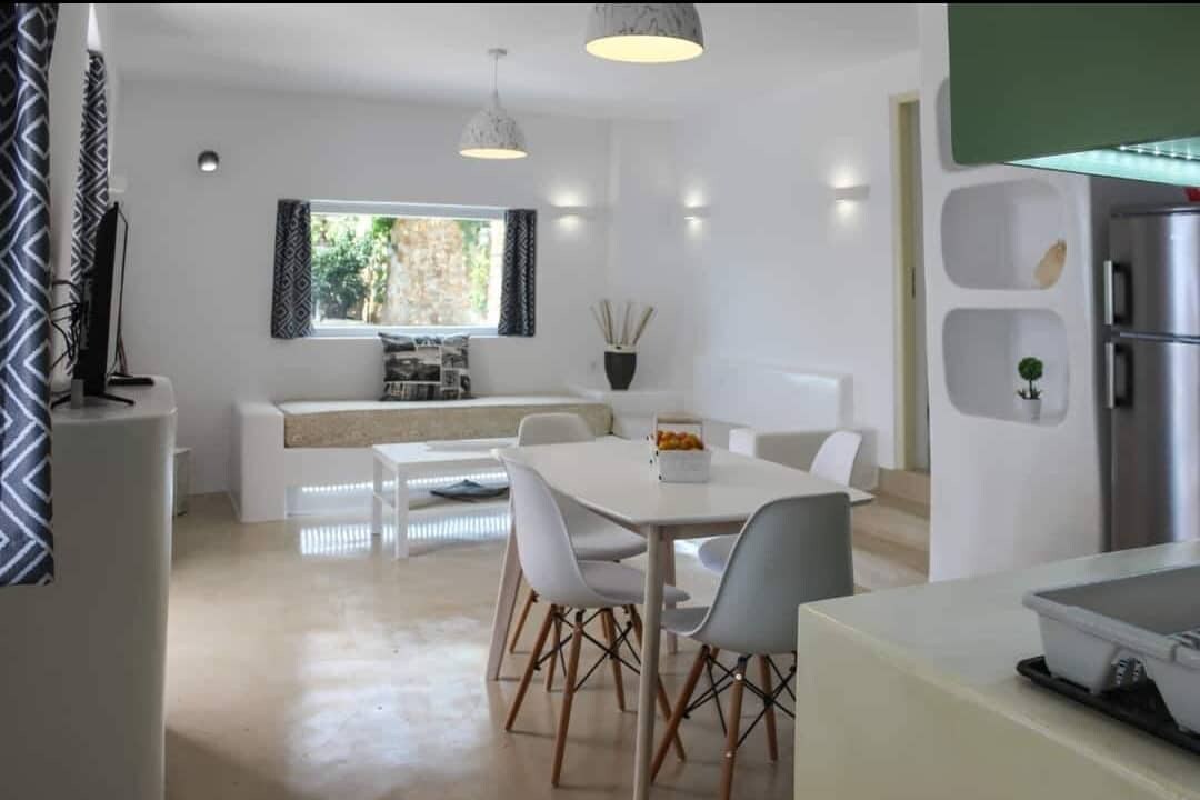 Une maison de campagne nouvellement construite, située dans la région d'Agios Dimitrios, du côté sud-est de l'île Tinos. Total respectueux de l'environnement et autonome car l'électricité provient des panneaux solaires. 1 chambre principale avec lit double, salon avec deux canapés qui peuvent être utilisés pour accueillir un adulte et un enfant. Décoration minimale et relaxante à l'architecture traditionnelle. Le jardin regorge d'arbres saisonniers et de légumes bio-cultivés. Profitez de votre barbecue privé avec vue imprenable.