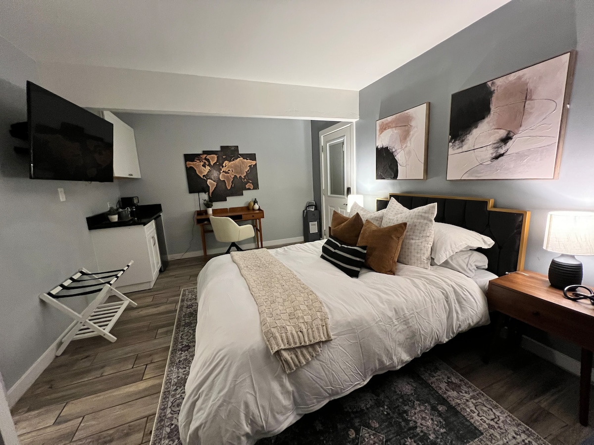 This studio is the perfect jumping off point to explore Austin. Minutes drive from downtown, the capitol, and UT; it’s nestled in the charming and safe east side neighborhood with dozens of restaurants, bars, and coffee shops within walking distance. The guest house with its own keyless entrance has stunning natural light and features brand new modern furniture, a custom kitchenette and an exceptionally comfy, customizable murphy bed.