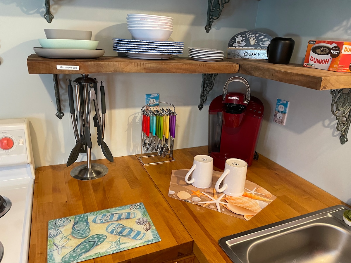Il s'agit d'un studio récemment rénové à Panama City. Il est à moins de 1 mile des restaurants de St. Andrews et à 20 minutes de Panama City Beach. Il dispose d'un lit Queen Size, d'une salle de bains et d'une petite cuisine ; idéal pour deux personnes. Tout dans l'appartement est neuf. Il dispose également d'un patio couvert avec des meubles pour se prélasser. C'est un endroit petit et confortable, mais qui a un excellent accès à toutes les activités de la région. Le Wi-Fi avec Amazon Prime est inclus.