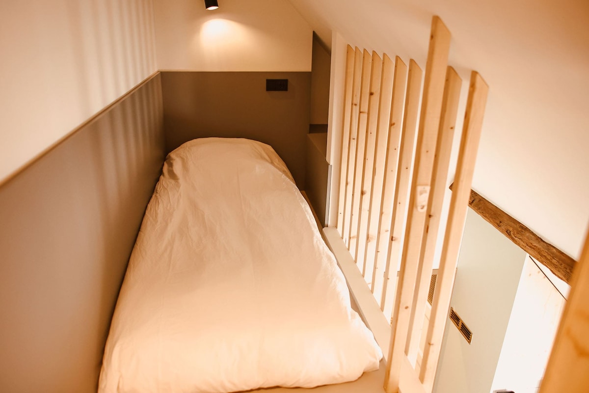 LE LOFT est l'un de nos joyaux : un salon confortable, une cuisine magnifique et une salle de bains luxueuse, l'endroit idéal pour une détente totale. Vous venez en couple ? Il y a beaucoup d'espace ! Un lit double confortable vous attend dans la chambre séparée. Vous séjournez avec trois personnes ? LE LOFT est parfait pour ça ! En plus du lit double dans la chambre, vous trouverez le lit mezzanine au-dessus du séjour (en haut des escaliers !).