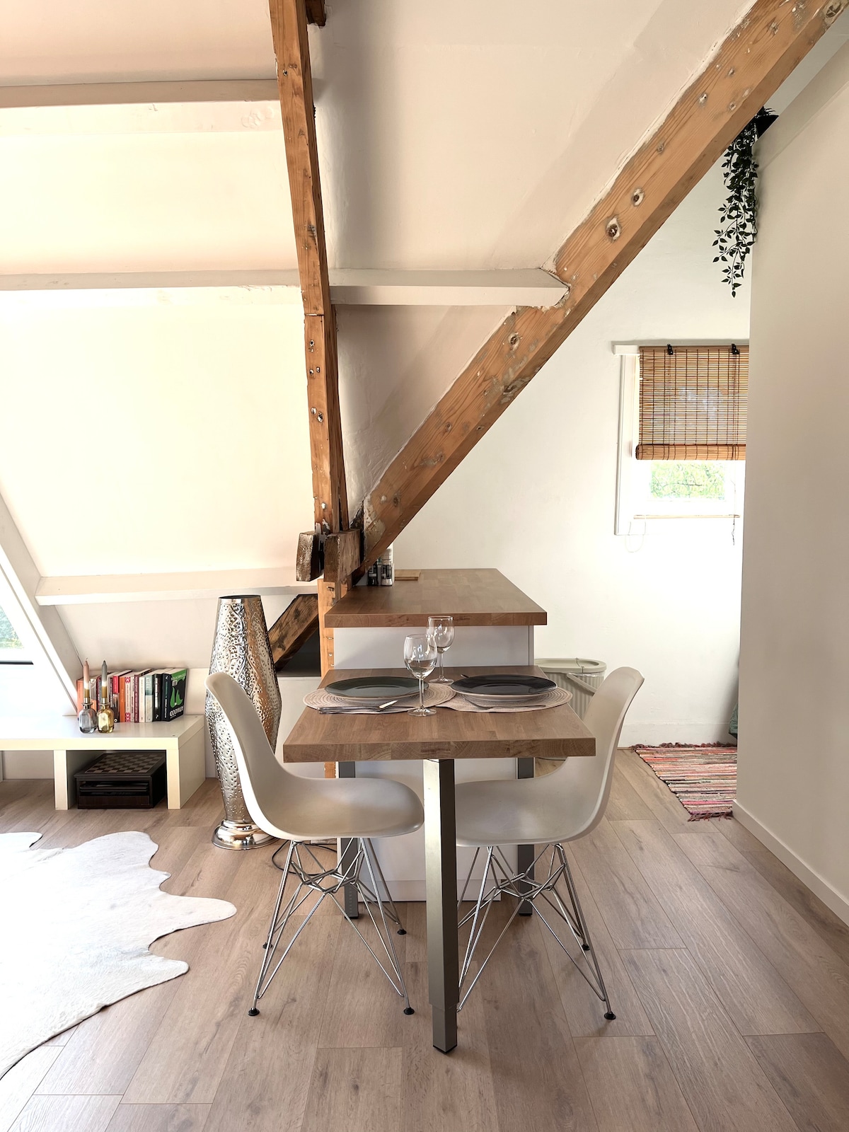 Un studio loft, niché au dernier étage d'une maison caractéristique des années 1930, en plein cœur d'Eindhoven. Ce studio mansardé élégant et confortable est le point de départ idéal pour un voyage en ville. Le studio avec mini balcon est situé juste en face d'un charmant parc de la ville - une oasis de paix au cœur de la ville. À deux pas des terrasses, cafés et restaurants. Le quartier commerçant et de divertissement est à 12 minutes à pied, et le quartier créatif de Strijp-S est accessible en 20 minutes.